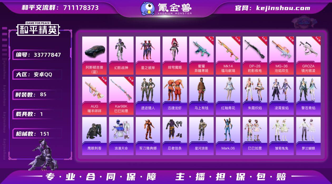 满级地铁安卓手Q-3粉装-7特效枪-1载具-4粉色飞行器-42383热力值-5王牌印记-85套装-151枪皮 【热门品类】:套装-浪漫天命,角色-军刀雅典娜,套装-忍者信条,套装-星河浪客,角色-Mark.06 【粉色套装】:粉装-幻影战神,粉装-星之彼岸,角色-绯穹魔姬 【粉色枪皮等级】:GROZA-镜光银凌(五级),AUG-暖羊咩咩(五级),蜜獾-异瞳寒姬(七级),Kar98K-巳巳如意(五级),Mk14-福马献瑞(五级),DP-28-豹影疾电(五级),MG-36-沧焰双生(五级) 【粉色载具】:阿斯顿马丁DBX(蓝) 【粉色枪皮】:GROZA-镜光银凌,AUG-暖羊咩咩,蜜獾-异瞳寒姬,Kar98K-巳巳如意,Mk14-福马献瑞,DP-28-豹影疾电,MG-36-沧焰双生 【粉色飞行器】:炫彩糖果飞行器,星之彼岸飞行器,沙丘之主天马,六号石头人飞行器 【粉色降落伞】:幻影战神降落伞,激战未来降落伞,星之彼岸降落伞,幽焰骑士降落伞,临安公主降落伞,桃粉嫣然降落伞,灵猫魔法师降落伞,绯穹魔姬降落伞,异瞳寒姬降落伞,炫彩糖果降落伞 【稀有套装】:套装-巳巳如意,套装-炫彩糖果,套装-马上有钱,套装-迅捷龙虾,套装-遗迹猎人,套装-雏菊兔兔,套装-萝兰蝴蝶,套装-小熊娃娃,套装-糖糖葫芦,套装-青团波波,角色-许七安,角色-怀庆长...