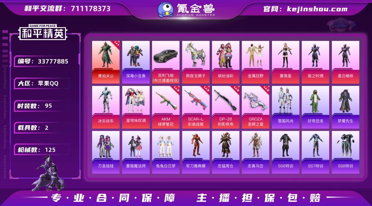 一红苹果手Q-1神装-7粉装-4特效枪-2载具-2粉色飞行器-40588热力值-5王牌印记-95套装-125枪皮 【红色神装等级】:角色-青焰关公(一级) 【红色角色神装】:角色-青焰关公 【热门品类】:粉装-缤纷油彩,套装-深海小丑鱼,角色-军刀雅典娜,角色-忠猛周仓,角色-忠真马岱,大砍刀-青龙偃月刀,撬棍-龙胆亮银枪 【粉色套装】:粉装-金属狂野,粉装-缤纷油彩,角色-蔷薇星,角色-宙之时溯,角色-星云暗核,角色-冰炎战车,粉装-星穹咏叹调 【粉色枪皮等级】:AKM-绿萝繁花(五级),SCAR-L-彩装战姬(五级),GROZA-圣辉之星(二级),DP-28-豹影疾电(四级) 【粉色载具】:宾利飞驰(布罗德盖棕双色),照夜玉狮子 【粉色枪皮】:AKM-绿萝繁花,SCAR-L-彩装战姬,GROZA-圣辉之星,DP-28-豹影疾电 【粉色飞行器】:万古烈焰飞行器,沙丘之主天马 【粉色降落伞】:马卡龙降落伞,星之彼岸降落伞,橘柚倾心降落伞,彩虹甜喵降落伞,未来歌姬降落伞,闲梦青缨降落伞,万古烈焰降落伞,莲影清波降落伞,龙行天下降落伞,雪月幻音降落伞,炫彩糖果降落伞 【稀有套装】:套装-雪国风尚 【稀有枪皮】:AKM-破晓战魂,AKM-霓虹街区,AKM-龙的传人,M16A4-红色方程式,M16A4-莲影清波,SCAR-L-玉兔...