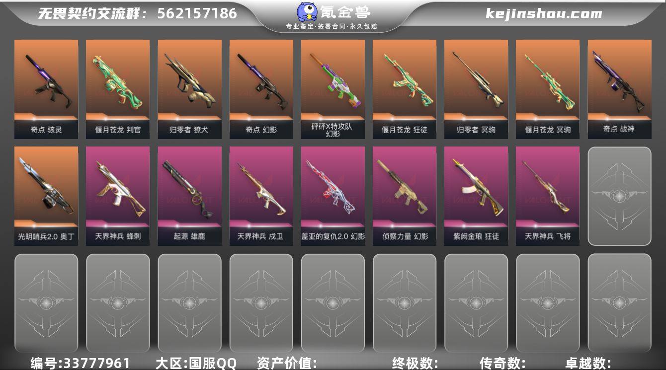 【sf750】【套装】:归零者套装,天界神兵套装 【英雄】:幻棱,炼狱,维斯,暮蝶,钛狐,壹决,铁臂,捷风,雷兹,幽影,不死鸟,贤者,猎枭,蝰蛇,零,芮娜,奇乐,尚勃勒,霓虹,斯凯,夜露,星礈,K/O,海神,盖可,黑梦,钢锁 【近战武器】:近战武器-弧光异彩 军刀,近战武器-沙尘幻旅 匕首,近战武器-生物收割器,近战武器-天玄刀 【狂徒】:狂徒-归零者,狂徒-偃月苍龙,狂徒-银河子午线,狂徒-紫阙金琅,狂徒-弧光异彩,狂徒-沙尘幻旅,狂徒-诡秘蛇影 【幻影】:幻影-砰砰X特攻队,幻影-奇点,幻影-盖亚的复仇//2.0,幻影-侦察力量,幻影-噬源兽防卫工程,幻影-战术小伙伴 【戍卫】:戍卫-天界神兵,戍卫-彩梦之城,戍卫-萌彩剪影,戍卫-折光棱晶 【獠犬】:獠犬-归零者,獠犬-弧光异彩,獠犬-胡桃狂想 【冥驹】:冥驹-归零者,冥驹-偃月苍龙,冥驹-胡桃狂想 【飞将】:飞将-天界神兵,飞将-沙尘幻旅,飞将-信手涂鸦,飞将-光导纤维,飞将-末日之翼 【战神】:战神-奇点,战神-萌彩剪影 【奥丁】:奥丁-光明哨兵//2.0,奥丁-信手涂鸦,奥丁-战术小伙伴,奥丁-末日之翼 【判官】:判官-偃月苍龙,判官-诡秘蛇影,判官-白日幻梦,判官-萌彩剪影 【雄鹿】:雄鹿-起源,...