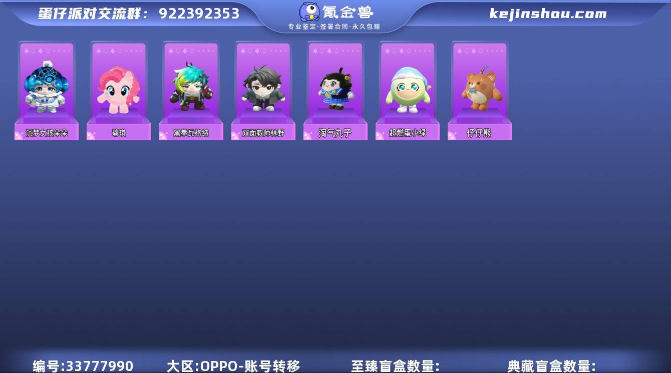 沉梦女孩朵朵,碧琪,黑拳瓦格纳,双面教师林野,超燃蛋小绿,淘气丸子,仔仔熊 段位:三阶鸡蛋 卖家说:玩的挺久的一个号,不想玩了,里面有碧琪,旺仔小馒头联动套装,爆米花联动套装,还有一个极品双字ID,没有充多少钱,看看有没有人想要,都来看看吧,求求啦😭😭😭,急用钱,好说话😢