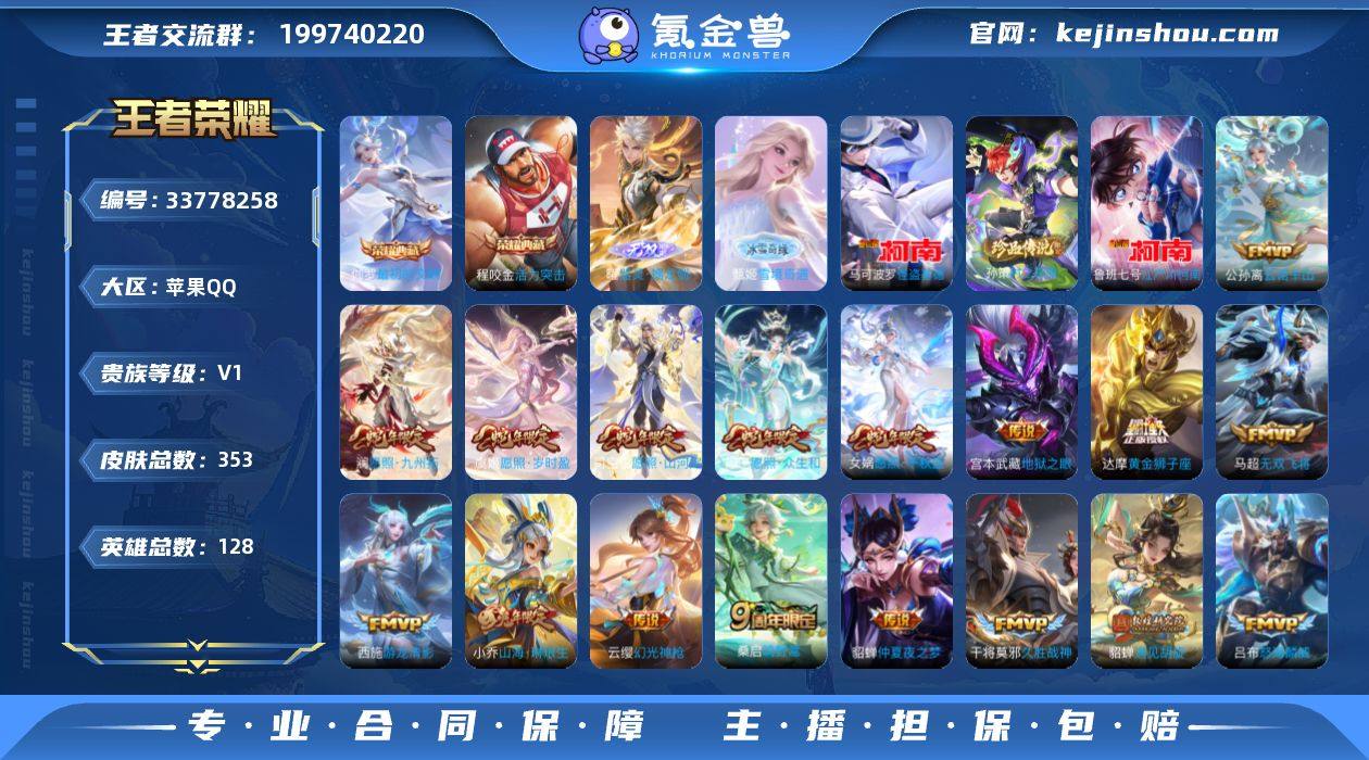 苹果Q-V0-最强王者段位-128英雄-353皮肤-2典藏皮肤-2无双-3珍品传说-24传说-107史诗【英雄全皮】:孙权全皮,苍全皮,鬼谷子全皮,黄忠全皮,敖隐全皮,戈娅全皮,影全皮【荣耀典藏】:程咬金活力突击,伽罗最初的交响【无双皮肤】:曜器灵螭龙剑,甄姬雪境奇遇【珍品传说】:孙策时之奇旅,鲁班七号江户川柯南,马可波罗怪盗基德【传说皮肤】:公孙离云诺千山,司空震愿照山河定,女娲愿照千秋盛,妲己愿照众生和,澜愿照九州拓,虞姬愿照岁时盈,云缨幻光神枪,桑启鸣野蒿,上官婉儿妄想奇谈,小乔山海琳琅生,吕布怒海麟威,马超无双飞将,孙尚香异界灵契,貂蝉遇见胡旋,王昭君乞巧织情,西施游龙清影,小乔音你心动,虞姬启明星使,张良黄金白羊座,干将莫邪久胜战神,达摩黄金狮子座,后羿黄金射手座,貂蝉仲夏夜之梦,宫本武藏地狱之眼【限定皮肤】:蒙犽顽岩魄,大乔绒语心约,姜子牙天穹之誓,狄仁杰阴阳师,小乔山海琳琅生,赵云皇家上将,墨子神迹守卫,妲己时之奇旅,孙尚香蔷薇恋人,孙尚香异界灵契,鲁班七号狮舞东方,庄周高山流水,高渐离玩趣恶龙,钟无艳超时空战士,白起夜都怪侠,芈月幻夜卜梦,元歌云间偶戏,元歌无心,甄姬游园惊梦,甄姬落雪兰心,曹操...