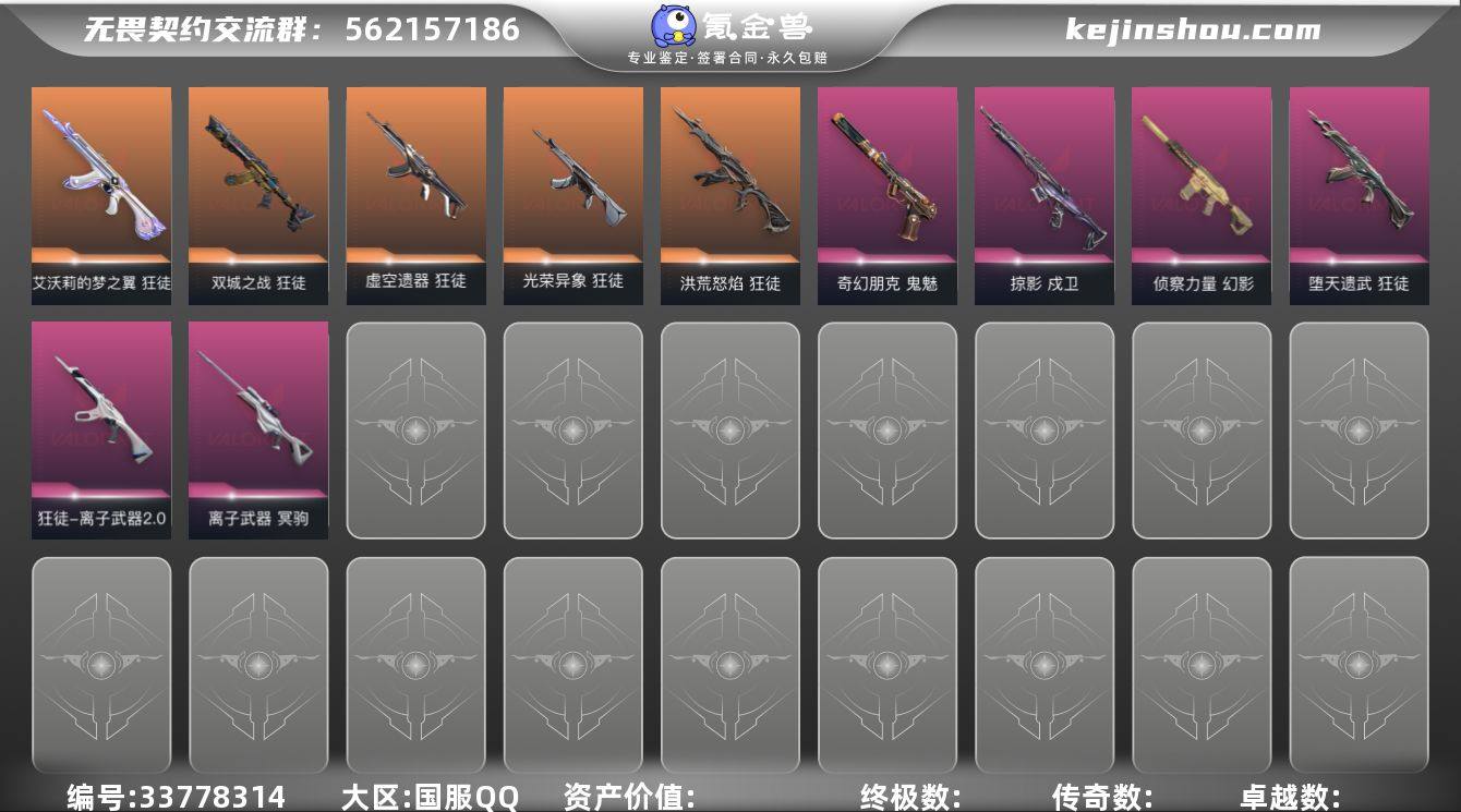 【sf757】【套装】:2022全球冠军赛套装,西部未来套装,《双城之战》收藏套装 【英雄】:幻棱,炼狱,维斯,暮蝶,钛狐,壹决,铁臂,捷风,雷兹,幽影,不死鸟,贤者,猎枭,蝰蛇,零,芮娜,奇乐,尚勃勒,霓虹,斯凯,夜露,星礈,K/O,海神,盖可,黑梦,钢锁 【近战武器】:近战武器-2022全球冠军赛 蝴蝶刀,近战武器-紫金爪刀,近战武器-双城之战 拳套,近战武器-未来开拓者,近战武器-彩虹魔力大棒槌,近战武器-诡秘蛇影 军刀,近战武器-神圣领域 战刀 【狂徒】:狂徒-洪荒怒焰,狂徒-双城之战,狂徒-虚空遗器,狂徒-光荣异象,狂徒-艾沃莉的梦之翼,狂徒-堕天遗武,狂徒-离子武器//2.0,狂徒-诡秘蛇影 【幻影】:幻影-2022全球冠军赛,幻影-西部未来,幻影-侦察力量,幻影-神圣领域,幻影-末日之翼,幻影-西部未来 【戍卫】:戍卫-掠影,戍卫-月球哨兵,戍卫-折光棱晶 【獠犬】:獠犬-神圣领域 【冥驹】:冥驹-离子武器,冥驹-星云暗涌 【飞将】:飞将-西部未来,飞将-末日之翼 【莽侠】:莽侠-RGX 11z Pro//3.0,莽侠-诡秘蛇影,莽侠-月球哨兵 【战神】:战神-神圣领域 【奥丁】:奥丁-西部未来,奥丁-末日之翼 【判官】:判官-诡秘蛇影 【雄鹿】:雄鹿-月球哨兵 【...