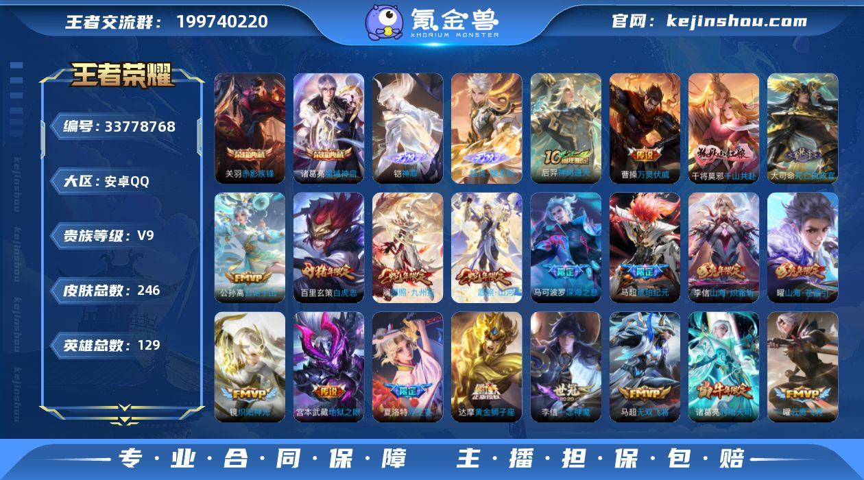 安卓Q-V9-最强王者段位-129英雄-246皮肤-2典藏皮肤-3无双-36传说-73史诗【英雄全皮】:孙权全皮,橘右京全皮,李信全皮,敖隐全皮,夏洛特全皮,司空震全皮【荣耀典藏】:诸葛亮星域神启,关羽赤影疾锋【无双皮肤】:李信问心剑,铠神罪,曜器灵螭龙剑【传说皮肤】:马超神骥逐星野,后羿神树通天,曹操万灵伏威,干将莫邪千山共赴,大司命死亡执政官,公孙离云诺千山,司空震愿照山河定,澜愿照九州拓,桑启鸣野蒿,马超琥珀纪元,夏洛特浮生妄,干将莫邪画中仙,花木兰燃星之曲,孙悟空齐天大圣,曜山海苍雷引,李信山海炽霜斩,吕布怒海麟威,李白诗剑行,不知火舞绯月行,橘右京枫霜尽,孙尚香音你闪耀,马可波罗深海之息,后羿无尽星芒,马超无双飞将,赵云淬星耀世,诸葛亮时雨天司,铠绛天战甲,镜炽阳神光,虞姬启明星使,曜云鹰飞将,李信一念神魔,干将莫邪久胜战神,达摩黄金狮子座,百里玄策白虎志,梦奇胖达荣荣,宫本武藏地狱之眼【限定皮肤】:狄仁杰阴阳师,赵云皇家上将,赵云龙胆,高渐离玩趣恶龙,钟无艳超时空战士,元歌无心,甄姬落雪兰心,马可波罗深海之息,马可波罗山海玄木吟,狄仁杰魔术师,达摩沙漠行僧,项羽海滩派对,韩信傲雪梅枪,王昭君午后...