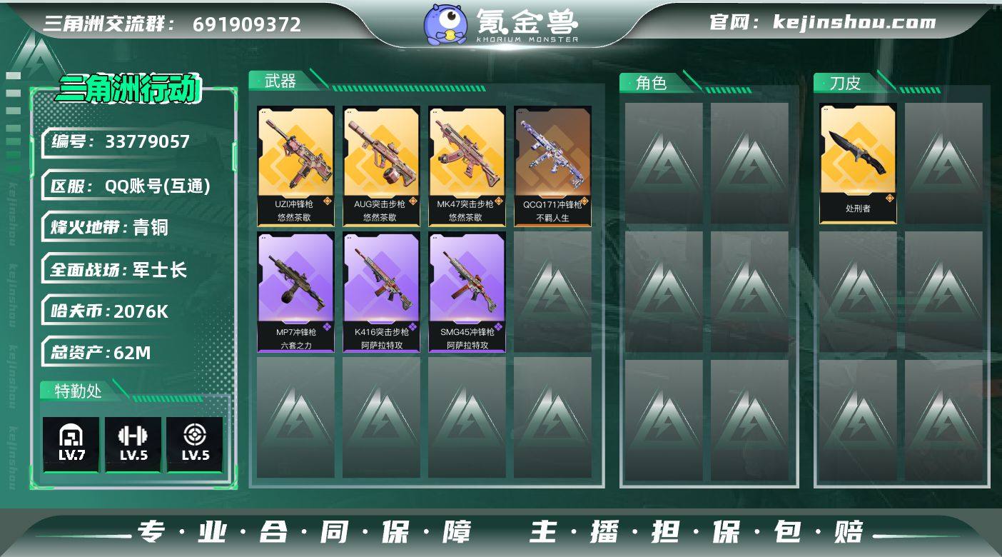 【SJZF8035】总资产62M/哈夫币207万/传说近战数1/传说枪皮数4/战场等级25/行动等级55/安全箱等时效性道具以游戏内数据为准,详情请看图/近战-处刑者/近战-黑鹰/AUG突击步枪-悠然茶歇/MK47突击步枪-悠然茶歇/UZI冲锋枪-悠然茶歇/QCQ171冲锋枪-不羁人生/K416突击步枪-阿萨拉特攻/SMG45冲锋枪-阿萨拉特攻/MP7冲锋枪-六套之力/ AK-12突击步枪-马年新春/SMG-45冲锋枪-行动开启/SMG-45冲锋枪-幻影结构/勇士冲锋枪-冰天雪地/M1014霰弹枪-幻影结构/M249轻机枪-毛鲁斯之力/QSZ92G-一帆风顺/G18-星链科技/G18-哈夫克航天/R93狙击步枪-斑马/QBZ95-1突击步枪-三角洲力量/K416突击步枪-几何迷彩/K416突击步枪-高雅黑/AUG突击步枪-浅蓝涂装/M7战斗步枪-红色涂装/SG552突击步枪-浅蓝涂装/SG552突击步枪-海浪/SG552突击步枪-狂欢/CAR-15突击步枪-狂欢/AS Val突击步枪-黑巧甜心/MP5冲锋枪-海色/UZI冲锋枪-海色/UZI冲锋枪-狂欢/M1014霰弹枪-高雅黑/M1014霰弹枪-重击/杠杆式步枪-出货/QJB201轻机枪-典雅/SR-25射手步枪-黄蜂/SR9射手步枪-出货/SV-98狙击步枪-红色涂装/沙漠之鹰-海浪/沙漠之鹰-高雅黑/挂饰-星/挂饰-聚宝盆/挂饰-审判/挂饰-悠然茶歇/挂饰-不羁人生/挂饰-麻将/挂饰-星象仪