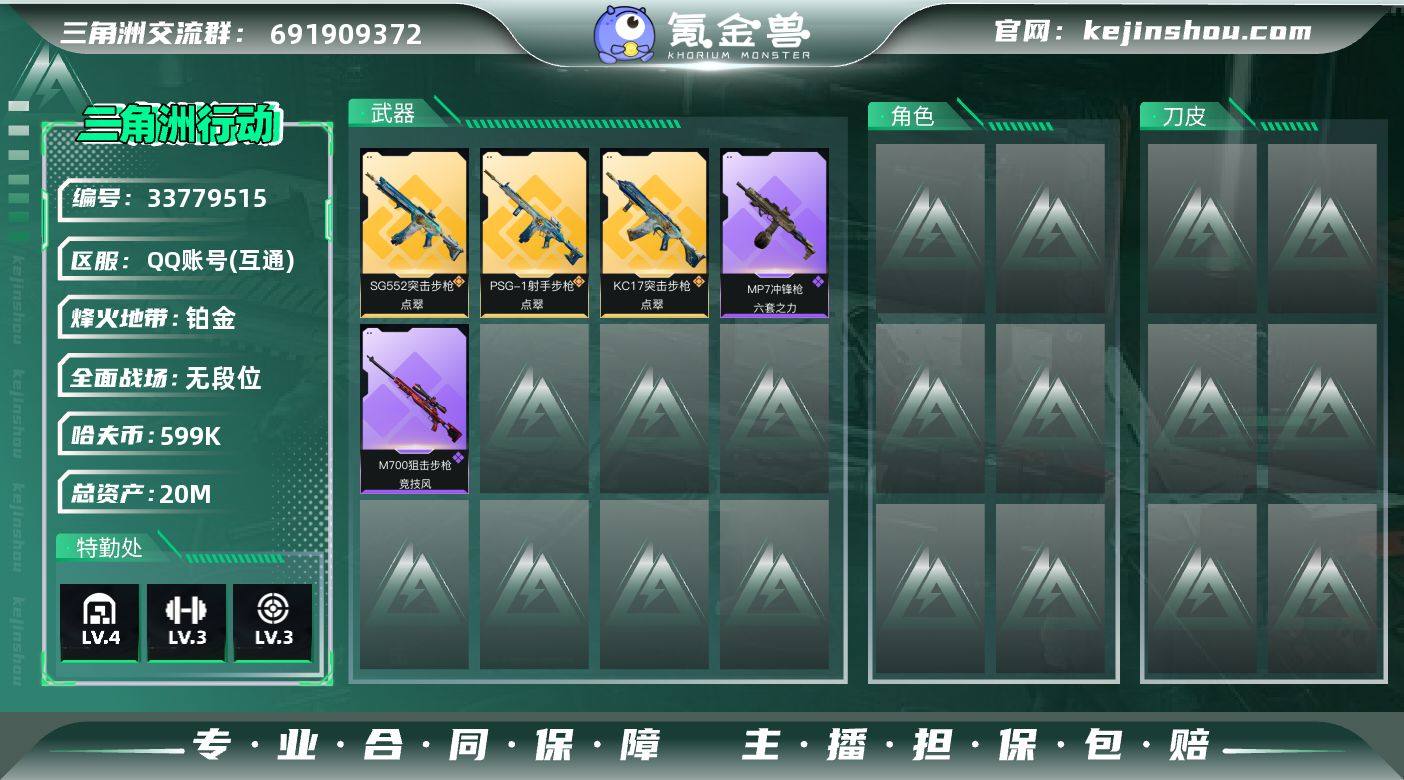 【SJ10255】总资产20M/哈夫币59万/传说枪皮数3/战场等级1/行动等级48/安全箱等时效性道具以游戏内数据为准,详情请看图/近战-黑鹰/SG552突击步枪-点翠/KC17突击步枪-点翠/PSG-1射手步枪-点翠/MP7冲锋枪-六套之力/QJB201轻机枪-炽焰/M700狙击步枪-竞技风/SG552突击步枪-贴花艺术/QJB201轻机枪-哈夫克卫队/M4A1突击步枪-粉色涂装/M4A1突击步枪-高雅黑/QBZ95-1突击步枪-海浪/K416突击步枪-高雅黑/AUG突击步枪-浅蓝涂装/SG552突击步枪-海浪/UZI冲锋枪-狂欢/M1014霰弹枪-高雅黑/M1014霰弹枪-海浪/挂饰-点翠