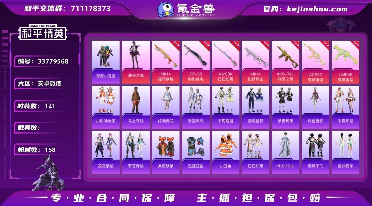 游戏49级 1粉装 7特效枪 5印记【热门】深海小丑鱼 小丑鱼【粉装】罪夜之冕【特效枪】ACE32萌骑漫游 UMP45萌骑冒险 AKS74U森灵之息 Kar98K巳巳如意 Mk14甜梦熊击 Mk14福马献瑞 DP28豹影疾电【飞行器】炫彩糖果飞行器 极意拳锋飞行器【头盔】深海小丑鱼头盔【背包】深海小丑鱼背包
