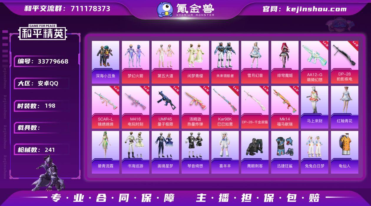 【LHPX1980】【特价出售/店主推荐】安卓 手Q-6粉装-9特效枪-6粉色飞行器-74954热力值-12王牌印记-198套装-241枪皮【热门品类】:粉装-梦幻火箭,套装-深海小丑鱼,套装-龟仙人【粉色套装】:粉装-梦幻火箭,粉装-第五大道,粉装-闲梦青缨,粉装-未来领航者,粉装-雪月幻音,角色-绯穹魔姬【粉色枪皮等级】:SCAR-L-锦绣绵绵(五级),M416-电玩时刻(五级),UMP45-量子极限(五级),汤姆逊-热量炸弹(五级),Kar98K-巳巳如意(五级),Mk14-福马献瑞(二级),AA12-G-萌骑幻想(五级),DP-28-千金淑猫(五级),DP-28-豹影疾电(五级)【粉色枪皮】:SCAR-L-锦绣绵绵,M416-电玩时刻,UMP45-量子极限,汤姆逊-热量炸弹,Kar98K-巳巳如意,Mk14-福马献瑞,AA12-G-萌骑幻想,DP-28-千金淑猫,DP-28-豹影疾电【粉色飞行器】:祥瑞起舞飞行器,梦幻火箭飞行器,镜光幻境飞行翼,BEARBRICK飞行器,动力核心飞行器,彩虹独角兽飞行器