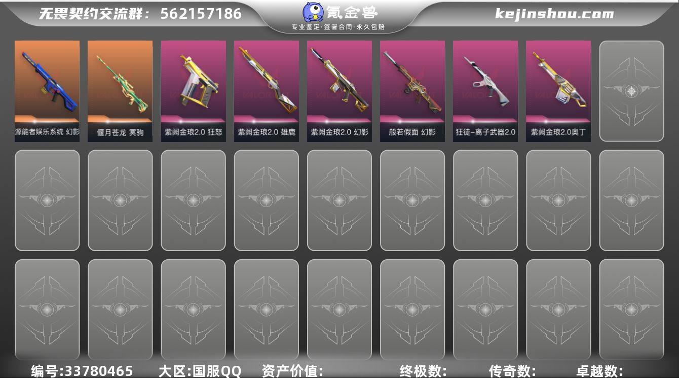 【sf780】【套装】:紫阙金琅//2.0套装 【英雄】:幻棱,炼狱,维斯,暮蝶,钛狐,壹决,铁臂,捷风,雷兹,幽影,不死鸟,贤者,猎枭,蝰蛇,零,芮娜,奇乐,尚勃勒,霓虹,斯凯,夜露,星礈,K/O,海神,盖可,黑梦,钢锁 【近战武器】:近战武器-紫金爪刀,近战武器-鬼丸国纲,近战武器-定海神珍,近战武器-沙尘幻旅 匕首 【狂徒】:狂徒-塑水宗,狂徒-创·纪元,狂徒-离子武器//2.0,狂徒-沙尘幻旅 【幻影】:幻影-源能者娱乐系统,幻影-般若假面,幻影-紫阙金琅//2.0,幻影-战术小伙伴 【戍卫】:戍卫-钢轨卫士,戍卫-萌彩剪影 【獠犬】:獠犬-胡桃狂想,獠犬-战术小伙伴 【冥驹】:冥驹-偃月苍龙,冥驹-胡桃狂想 【飞将】:飞将-沙尘幻旅,飞将-光导纤维 【战神】:战神-萌彩剪影 【奥丁】:奥丁-紫阙金琅//2.0,奥丁-战术小伙伴 【判官】:判官-萌彩剪影 【雄鹿】:雄鹿-紫阙金琅//2.0 【骇灵】:骇灵-沙尘幻旅,骇灵-光导纤维 【蜂刺】:蜂刺-胡桃狂想,蜂刺-战术小伙伴 【标配】:标配-超能偶像,标配-光导纤维 【VCT手枪】:标配-VCT25 x G2 【正义】:正义-沙尘幻旅,正义-游戏结束 【鬼魅】:鬼魅-流星兵团,鬼魅-胡桃狂想,鬼魅-星云暗涌 【狂怒】:狂怒-紫阙金...
