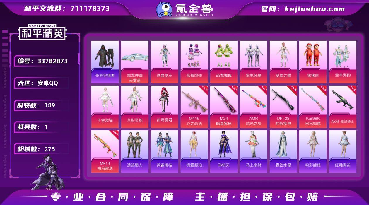 【A12116】安卓【小号 角色-千金淑猫/AKM-幽焰骑士(三级)/M416-心之恋语(七级)/套装-龟仙人/霜龙神御(云雾蓝)】手Q-10粉装-7特效枪-1载具-5粉色飞行器-88370热力值-16王牌印记-189套装-275枪皮 【热门品类】:套装-奇异狩猎者,套装-龟仙人,套装-粉红小猪 【粉色套装】:粉装-铁血龙王,粉装-蓝莓炮弹,粉装-恐龙拽拽,粉装-紫电风暴,角色-圣堂之誓,玩偶服-猪猪侠,粉装-金丰海韵,角色-千金淑猫,角色-月影灵韵,角色-绯穹魔姬 【粉色枪皮等级】:AKM-幽焰骑士(三级),M416-心之恋语(七级),Kar98K-巳巳如意(五级),M24-暗星紫秘(七级),Mk14-福马献瑞(一级),AMR-炫光之旅(七级),DP-28-豹影疾电(五级) 【粉色载具】:霜龙神御(云雾蓝) 【粉色枪皮】:AKM-幽焰骑士,M416-心之恋语,Kar98K-巳巳如意,M24-暗星紫秘,Mk14-福马献瑞,AMR-炫光之旅,DP-28-豹影疾电 【粉色飞行器】:香车宝马飞行器,天之羽翼飞行器,镜域双华-灵镜之阶,龙翔九天飞行器 【粉色降落伞】:银河战甲降落伞,春暖花开降落伞,梦幻火箭降落伞,四圣焕新降落伞,心之恋语降落伞,星之彼岸降落伞,梦之光华降落伞,暗夜玫瑰降落伞,洛神天依降落伞,暗星紫秘降落伞,妙趣可丽降落伞,沙丘之主...