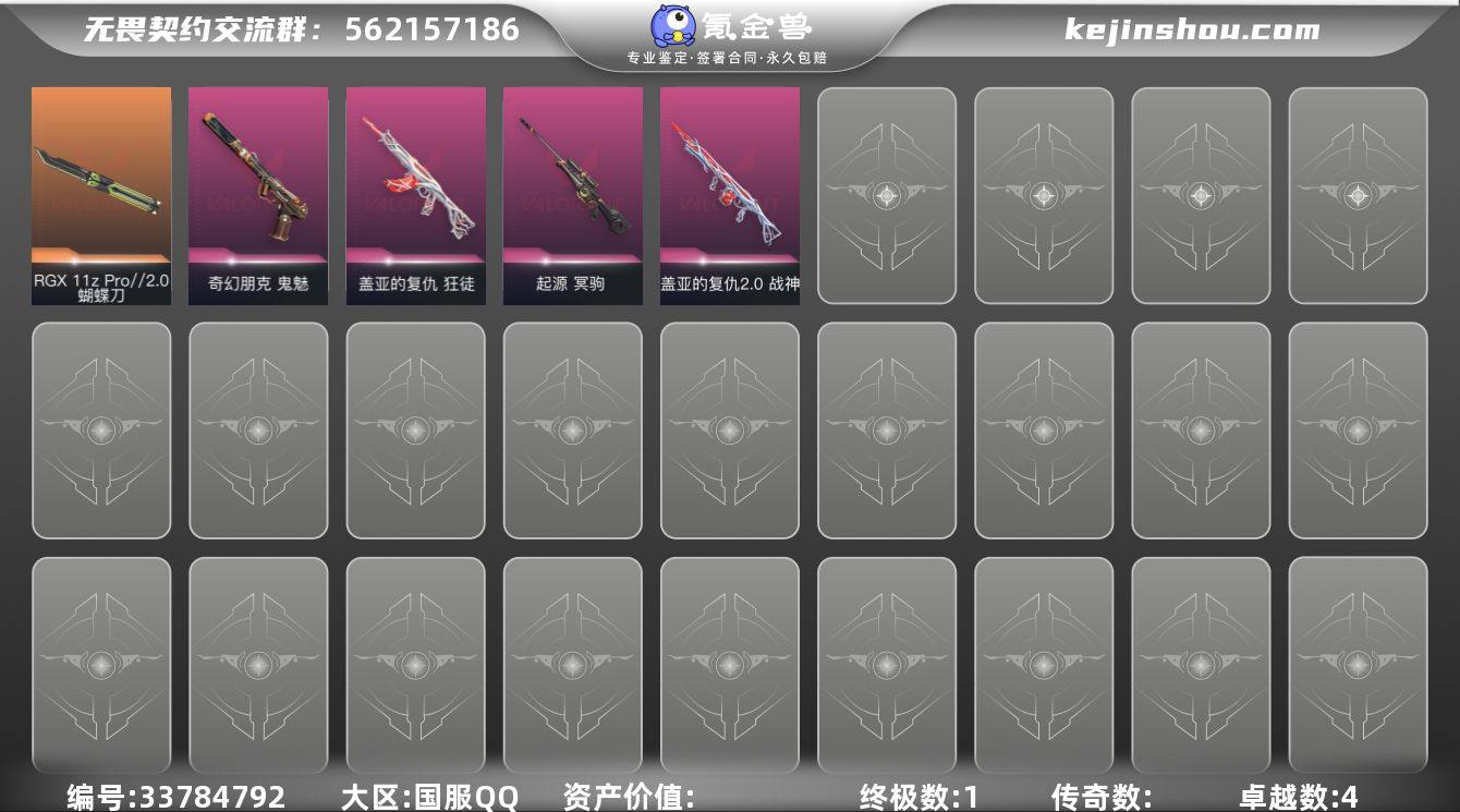 【英雄】:幻棱,炼狱,维斯,暮蝶,钛狐,壹决,铁臂,捷风,雷兹,幽影,不死鸟,贤者,猎枭,蝰蛇,零,芮娜,奇乐,尚勃勒,霓虹,斯凯,夜露,K/O,海神,盖可,黑梦,钢锁 【近战武器】:近战武器-RGX 11z Pro//2.0 蝴蝶刀 【狂徒】:狂徒-盖亚的复仇 【冥驹】:冥驹-起源 【战神】:战神-盖亚的复仇//2.0 【鬼魅】:鬼魅-奇幻朋克,鬼魅-诡秘蛇影,鬼魅-星云暗涌 【卡面】:精灵大战 卡面,南瓜盛典 卡面,梦幻奶茶 卡面,无畏契约GO!第一卷:芮娜 卡面,无畏契约GO!第一卷:零 卡面,代号红色 卡面,新兵报到 卡面,V契约 卡面,无畏契约 卡面 【喷漆】:控场勿近 喷漆,捷风差距 喷漆,买装还是存钱 喷漆,胜利属于无畏契约 喷漆,GLHF 喷漆,无畏契约 喷漆 【挂饰】:伞绳 挂饰,第九季//第三幕 纪念币 挂饰,无畏契约GO!第一卷 芮娜 挂饰,无畏契约GO!第一卷 零 挂饰,第九季//第一幕 纪念币 挂饰,天外飞客 挂饰,无畏契约 纪念币 挂饰