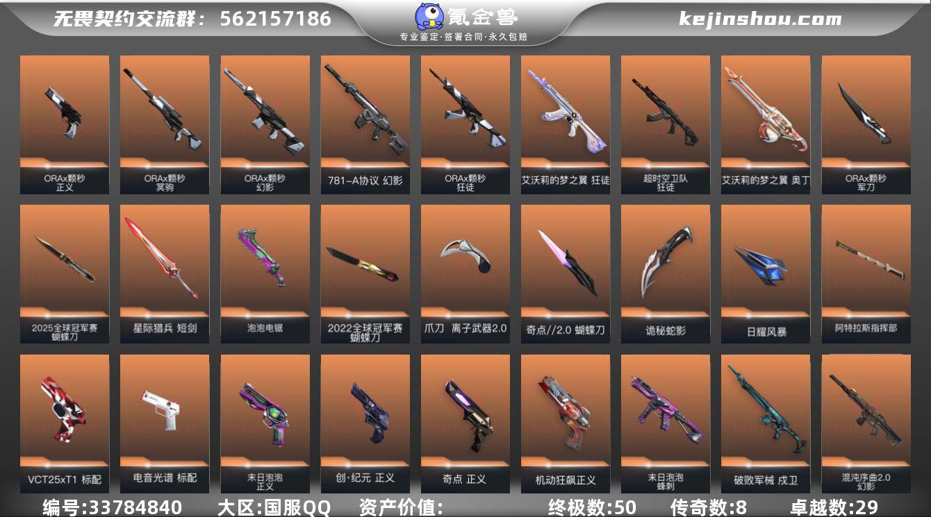 【961342】【套装】:2025全球冠军赛套装,2022全球冠军赛套装,ORA x 颗秒套装,末日泡泡套装,掠影//2.0套装,神中神罚套装,离子武器//2.0套装 【英雄】:幻棱,炼狱,维斯,暮蝶,钛狐,壹决,铁臂,捷风,雷兹,幽影,不死鸟,贤者,猎枭,蝰蛇,零,芮娜,奇乐,尚勃勒,霓虹,斯凯,夜露,星礈,K/O,海神,盖可,黑梦,钢锁 【近战武器】:近战武器-2025全球冠军赛 蝴蝶刀,近战武器-2022全球冠军赛 蝴蝶刀,近战武器-蒙太奇 战斧,近战武器-碎心裂刃,近战武器-ORA x 颗秒 军刀,近战武器-泡泡电锯,近战武器-影钩,近战武器-神之刃,近战武器-奇点//2.0 蝴蝶刀,近战武器-落英飞旋,近战武器-镭切,近战武器-鬼丸国纲,近战武器-离子武器//2.0 爪刀,近战武器-夜刃诡镰,近战武器-诡秘蛇影 军刀,近战武器-日耀风暴 遗器,近战武器-阿特拉斯指挥部 甩棍,近战武器-星际猎兵 短剑 【狂徒】:狂徒-2025全球冠军赛,狂徒-洪荒怒焰,狂徒-混沌序曲,狂徒-机动狂飙,狂徒-全息波普//2.0,狂徒-塑水宗,狂徒-偃月苍龙,狂徒-创·纪元,狂徒-RGX 11z Pro,狂徒-光荣异象,狂徒-滋滋X特攻队,狂徒-多弥尔的复仇,狂徒-ORA x 颗秒,狂徒-艾沃莉的梦之翼,狂徒-超时空卫队,狂...