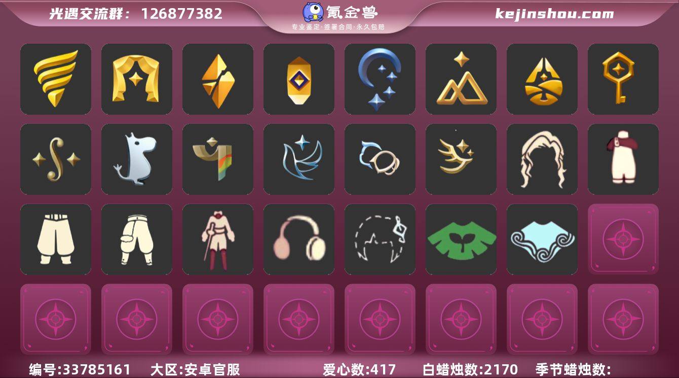 安卓官服18季白枭绊爱武士裤多复刻两千蜡 常驻:晨岛,云野,雨林,霞谷,暮土,禁阁 季节:织光季,潜海季,表演季,破晓季,欧若拉,追忆季,夜行季,拾光季,归巢季,九色鹿,筑巢季,二重奏季,姆明季,彩染季,青鸟季,双星季,迁徙季 礼包:向日葵耳饰,星月头冠,彩虹耳饰,绊爱礼包,音韵吉他,瑞气纸伞 热门复刻:红吉他,星星面具,樱花发型,逍遥发型,绿芽,海洋斗,击剑裤,武士裤,虚荣,正太头,猫猫头,背带裤,搓澡巾,花环长发,红耳机,箬笠,平顶帽,雨伞,高音钢琴,白金斗篷,黑金斗篷,红金斗篷,黄鼠狼面具,疯帽匠发型,女巫发型,失孤发型,蓝色音乐会,书虫发型,五周年裤子,道袍,九 资源:2170/417/10 身高:2.17-14.17 当前:14.02 -具体资源以衣柜为准-