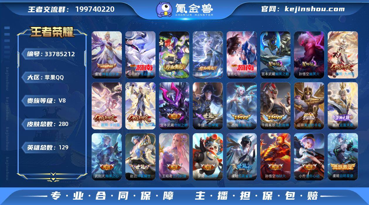 可换绑【4珍品捡漏号·珍品怪盗基德柯南孙嫦娥·省标鲁班·典藏伽罗·蛇限司空震澜·蓝屏警告·】 5207星币 9按键,2星传说,1天幕,14王者印记,满级铭文,无二次,苹果Q-V8-280皮肤-1典藏皮肤-4珍品传说-19传说-74史诗【英雄全皮】:孙权全皮,太乙真人全皮,蒙恬全皮,空空儿全皮,影全皮【荣耀典藏】:虞姬神鉴启示录【珍品传说】:嫦娥器灵落星盏,孙策时之奇旅,鲁班七号江户川柯南,马可波罗怪盗基德【星元皮肤】:宫本武藏幽冥之眼,孙悟空幽冥火【天幕】:财神纳福天幕【传说皮肤】:司空震愿照山河定,澜愿照九州拓,虞姬愿照岁时盈,嬴政玄雷天君,赵云淬星耀世,王昭君乞巧织情,西施游龙清影,周瑜音你心动,小乔音你心动,铠绛天战甲,虞姬启明星使,李信一念神魔,干将莫邪久胜战神,虞姬云霓雀翎,梦奇胖达荣荣,后羿黄金射手座,宫本武藏地狱之眼,孙悟空地狱火,武则天海洋之心【限定皮肤】:白起狰,狄仁杰阴阳师,虞姬凯尔特女王,赵云皇家上将,墨子神迹守卫,嬴政白昼王子,孙尚香蔷薇恋人,鲁班七号狮舞东方,扁鹊奇幻香踪,芈月重明,吕布猎兽之王,吕布御风骁将,元歌云间偶戏,甄姬游园惊梦,曹操烛龙,典韦穷奇,典韦蓝屏警告,马可波罗逐梦之星,马可波...