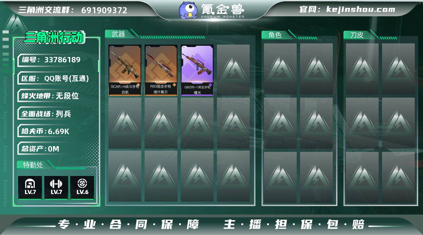 【SJZG4965】总资产106M/哈夫币669万/传说近战数1/传说枪皮数11/战场等级10/行动等级60/安全箱等时效性道具以游戏内数据为准,详情请看图/零号玩家/威龙-凌霄戍卫/近战-处刑者4级/黑鹰/QBZ95-1突击步枪-凌霄戍卫/AUG突击步枪-悠然茶歇/SCAR-H战斗步枪-启航/47突击步枪-悠然茶歇/UZI冲锋枪-悠然茶歇/勇士冲锋枪-能天使-午夜邮差/QCQ171冲锋枪-不羁人生/M14射手步枪-缄花/SR-25射手步枪-缄花/R93狙击步枪-维什戴尔/.357左轮-缄花/QBZ95-1突击步枪-曙光/MP7冲锋枪-六套之力/QJB201轻机枪-炽焰/M4A1突击步枪-零点/K416突击步枪-碳纤维/M7战斗步枪-捣蛋鬼/SG552突击步枪-贴花艺术/AK-12突击步枪-零点/ AK-12突击步枪-马年新春/SCAR-H战斗步枪-荣耀列队/CAR-15突击步枪-亚特兰蒂斯/MP5冲锋枪-弄臣/Vector冲锋枪-先锋/SMG-45冲锋枪-行动开启/SMG-45冲锋枪-动力机能/SVD狙击步枪-战术行动/SV-98狙击步枪-星链科技/SV-98狙击步枪-哈夫克航天/SV-98狙击步枪-精英联盟/QSZ92G-一帆风顺/G18-星链科技/G18-哈夫克航天/M4A1突击步枪-海色/QBZ95-1突击步枪-海浪/腾龙突击步枪-三角洲力量/M16A4突击步枪-高雅黑/SG552突击步枪-浅蓝涂装/SG552突击步枪-海浪/SG552突击步枪-狂欢/G3战斗步枪-高雅...