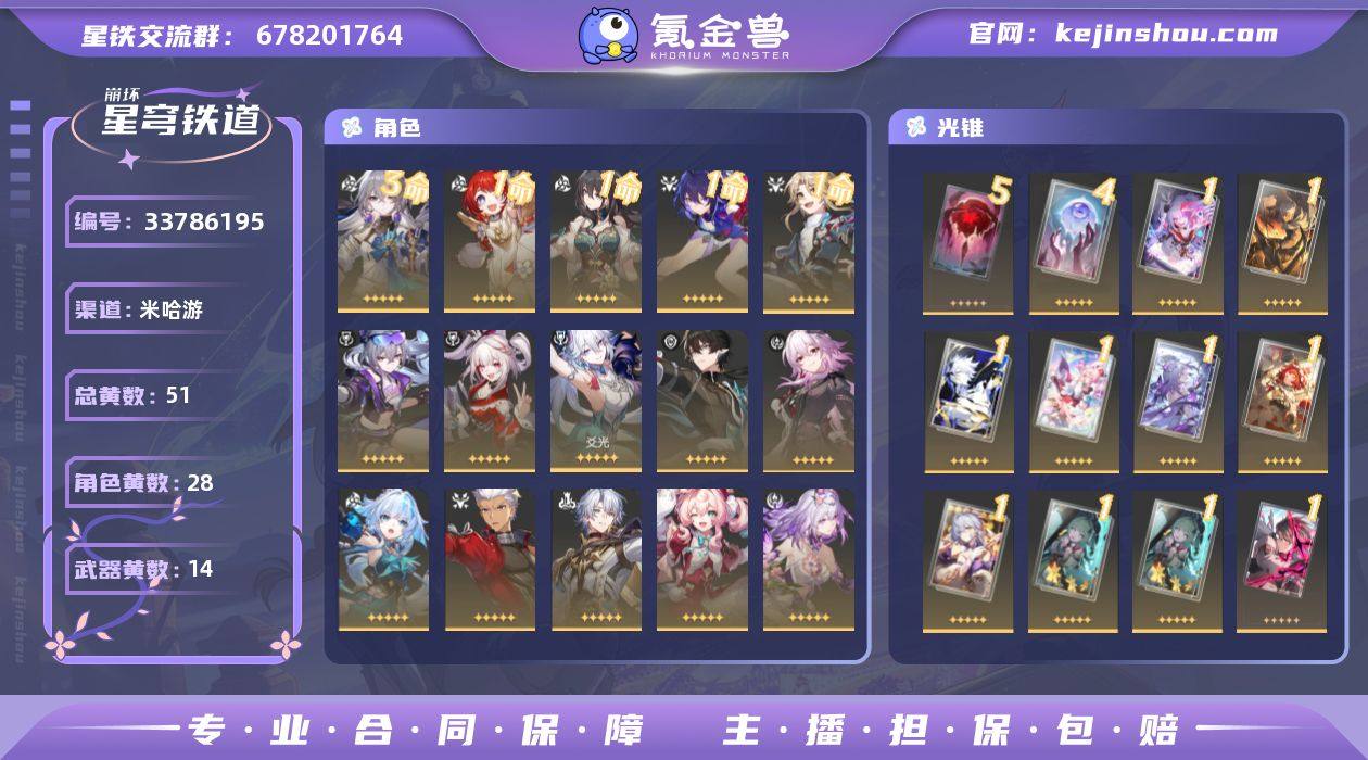 活动周年庆资源全没领,武器池垫了15发,银狼专武肯定能出,号上白厄队,记忆队,欢愉队全齐,练度较高,打任何副本挂自动随便过。号上材料资源也很多。