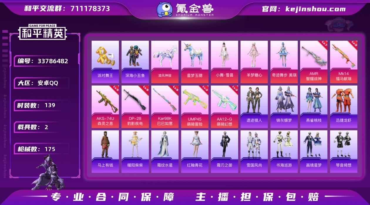 139套装/枪械7/装备208/载具2/战备151/王牌印记8/热力值49948/三级UMP45-萌骑冒险/五级AKS-74U-森灵之息/五级Kar98K-巳巳如意/五级MK14-福马献瑞/七级AMR-智耀战神/三级AA12-G-萌骑幻想/五级DP-28-豹影疾电/派对舞王/深海小丑鱼/小丑鱼/潮萌小黄鸭/浪漫波比/红熊茄茄/奇迹舞步-美琪/羊梦糖心/小舞·雪昙/星梦玉骢/凌风神骏/UMP45-萌骑冒险/AKS-74U-森灵之息/Kar98K-巳巳如意/MK14-福马献瑞/AMR-智耀战神/AA12-G-萌骑幻想/DP-28-豹影疾电/炫彩糖果飞行器/极意拳锋飞行器/六号石头人降落伞/纱华羽翼飞行器/绝对恒星降落伞/江南烟雨降落伞/圣域龙灵降落伞/智耀战神降落伞/幻彩电音降落伞/炫彩糖果降落伞/罪夜之冕降落伞/摩登天骄/巳巳如意/甜心蒙太奇/雪国风尚/炫彩糖果/马上有钱/迅捷龙虾/遗迹猎人/燕燕于飞/鱼渊荷华/晶辉守护/萌萌史莱姆/粉恋花/紫幽梦/蓝冰羽/极速光影/彩虹兔/云朵鹅/雪绒豹/朱霞炽焰/凌霄紫焰/擎苍青焰/书海巡游/画境星梦/琴音绮想/霜刃之御/雨过天青/红釉青花/霜纹水星/暖阳柴柴/锦灰蝶梦/燕雀桃枝/AKM-冰凉西瓜/AKM-缤纷海域/AKM-龙的传人/SCAR-L-炫彩节奏/M416-夜灯/M416-红色方程式/M416-萌萌史莱姆/GROZA-荧海星豚/AUG-甜蜜菠萝/AUG-耀粉歌者/QBZ-原初圣...