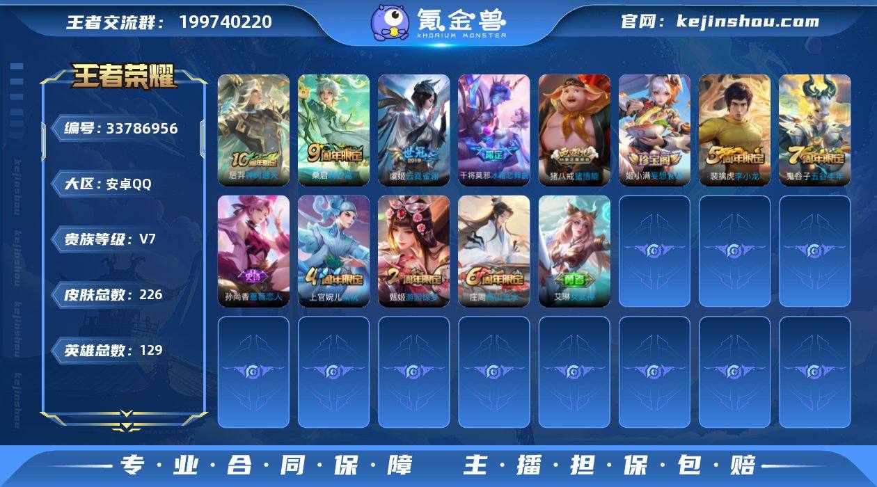 安卓Q 可二次 金标万战虞姬 苍 孙尚香 金标张良 发育路62段 4传说 129英雄226皮肤 苍全皮 神树通天 鸣野蒿 云霓雀翎 末日机甲女 山海玄木吟 冰霜恋舞曲 拒霜思 猪悟能 神迹守卫钟馗 狮舞东方 原初追逐者 黎明之约 梁祝 狼魂孤将 百解令 无限星赏官 原初探秘者 李小龙 水晶猎龙者 暗隐猎兽者 猫狗日记男 金属风暴 地狱岩魂 特工魅影 曙光守护者 女武神 蔷薇恋人 舞动绿茵 妄想食味 逐浪之夏 心灵战警 修罗 晚萤 魅语 千年之狐 功夫厨神 心灵骇客 圣诞恋歌 幽灵船长 乘风破浪 圣诞狂欢 末日机甲男 星夜王子 天才门将 暗夜贵公子 偶像歌手 街头霸王 箭羽风息 摇滚巨星 缤纷独角兽 德古拉伯爵 冰雪圆舞曲 狮心王 蜃楼王 妖精王 炼金王 凯尔特女王 狰 饕餮 烛龙 重明 穷奇 御狮 御霄 御旌 御銮 朔风刀 混沌棋 疑决卦 醍醐杖 万华元夜 东方不败 演武夺筹 驱傩正仪 未来纪元赵云 如懿 重装意志 千军破阵 拳王 王者荣耀账号