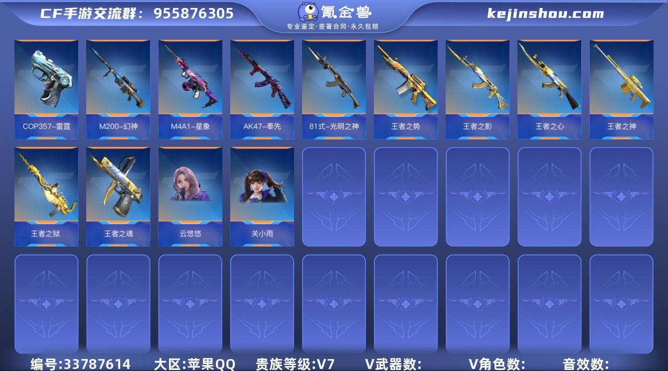 HG756617/【云悠悠老婆陪你玩!星象+奉先无双+盖+仲康+幻神战舞+王势HeartShot+王狱等7把王者主武+3把cop+2万钻石】包人脸可转区V7-200V-18王者/M4A1-星象AK47-奉先无双CZS2-仲康AN94-盖/王者之势HeartShot王者之狱王者之影王者之心王者之霆王者之神王者之尊M200-幻神战舞81式-光明之神/王者之业王者之魂/COP357-安琪拉COP357-雷霆COP357-黑铁/王竞手雷套/98K星神SCAR白虎双持GLOCK18-本初/云悠悠语音卡步练师炽天使X关小雨瞳(角色)/显血戒指消灭特效消灭音效狙击枪线抛物线武器按键/王影星象奉先王势带音效卡(以截图为准)