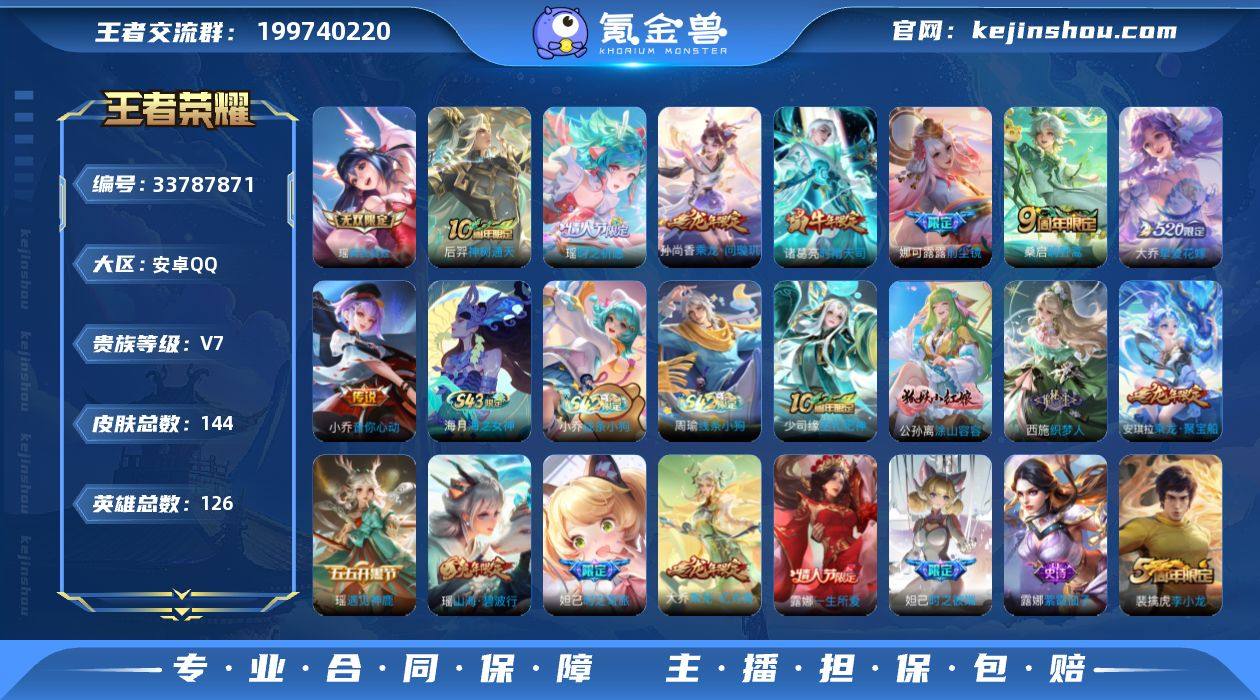0BCZNL可二次"无双1极品女号传说8优质限定18 钱包已注销、信用分正常、无设备脸 无双皮肤:真我赫兹(瑶), 传说限定:前尘镜,时雨天司,乘龙·问璇玑,挚爱花嫁,时之祈愿-瑶,神树通天, 传说皮肤:音你心动-小乔,鸣野蒿, 新史诗限定:织梦人,涂山容容, 史诗限定:热情桑巴,时之彼端,时之奇旅-妲己,魔法小厨娘,乘龙·聚宝船,寅虎·展翼,乘龙·忆丹青,山海·碧波行,一生所爱,匿光追影者, 新史诗皮肤:上官婉儿群星魔术团, 优质史诗皮肤:时之奇旅-安琪拉,千筹问战,时之恋人-孙尚香,白蛇,遇见神鹿, 周年皮肤:李小龙,遇见飞天,鹤鸣心笺,神树通天,高山流水,五谷丰年, 珍宝阁:蔷薇恋人, 史诗皮肤:无心,乘风破浪,幽灵船长,千年之狐,紫霞仙子,冰冠公主,顽趣-阿古朵,魅力维加斯,女仆咖啡,摇滚巨星,拒霜思,水果甜心,鹰眼统帅,奇遇舞章,绅士熊喵,乱世虎臣, 贵族7 无双1 传说皮肤8 史诗皮肤44 皮肤数量141 皮肤价值:99924 英雄126 至尊星耀IV 总场次1598 贵族7 无双1 传说皮肤8 史诗皮肤44 皮肤数量141 皮肤价值:99924 英雄126 至尊星耀IV 总场次1598