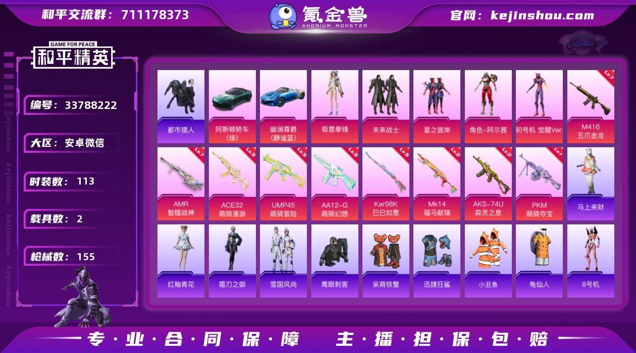 游戏63级 社交 无二 5粉装 9特效枪 2载具 11印记【热门】都市猎人 小丑鱼 龟仙人 8号机 Mark.06【载具】阿斯顿马丁DBS绿 幽澜尊爵静谧蓝【粉装】未来战士 星之彼岸 阿尔茜 初号机觉醒Ver. 极意拳锋【特效枪】M416五爪金龙 ACE32萌骑漫游 UMP45萌骑冒险 AKS74U森灵之息 Kar98K巳巳如意 Mk14福马献瑞 AMR智耀战神 AA12G萌骑幻想 PKM萌骑夺宝【飞行器】变形金刚飞行器 极意拳锋飞行器【头盔】百万伏特头盔 深海小丑鱼头盔【背包】深海小丑鱼背包