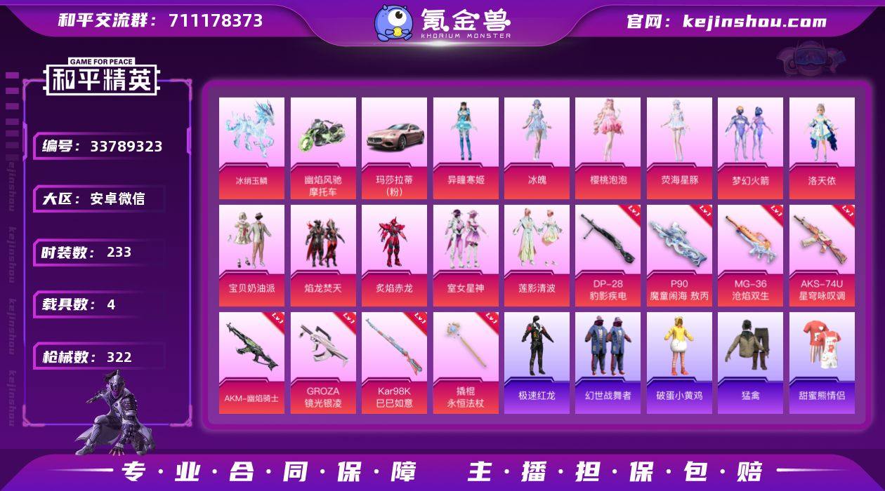 13粉装 9粉枪 4载具 233套装 322枪皮 46热门 玛莎拉蒂Ghibli(粉) 幽焰风驰摩托车 冰绡玉鳞 梦幻火箭 宝贝奶油派 洛天依 机械征服者 滨海厨神 吉莉礼服 北国孤狼 海龙战士 幻羽潜行 虎虎生威吉莉 精神漫游 疯狂小兔子 空投萌叽 白熊同盟 莲影清波 炫蓝之夏 萌黄之夏 花园小羊咩 黄色名流 牛气满满 猛禽 破晓战魂 鹤鸣 原初圣火 荣耀 逆风勇士 萌趣颜团子 特种颜团子 镭射皇者 银白舞王 耀粉歌者 潮流炫酷 飞行日记 莱茵河畔 暴风机械师 福星高照 时空追击者 暗夜傀儡 柠萌假日 王牌教练 缤纷假日 雪兔飞飞 飞驰魅影 龟仙人 音速流光 鹤发童颜 日照花林 果汁能量 明鸳圣池 冷焰舞者 空岛之星 月蓝流光 狂战萌兔 香榭午后 都市漫游者 惊鸿侠骨 萌趣咩咩 竞技名士 娇憨猪猪 锦衣飞扬 深蓝色名流 云霞荷露 晨曦薄雾 牛仔情诗 银月精灵 酒红色名流 战地督导 灼焰舞者 龙的传人 玉兔迎春 快闪甜心 忠真马岱 田园牧歌 春光漫游 轻风白浪 湖蓝色名流 蓝色守护者 光之冒险 绯格组合 青春校园 滨海假日 完美偶像 街头潮人 怒火燎原 蓝彩潮人 绮丽涂鸦 特殊使命 缤纷果语 野性战心 暗金炫舞 机械冒险家 格斗先锋 幻世战舞者 人气偶像 龙舌兰冰茶 幻影武者 都市魅力 冰川特警 夏日音浪 热...