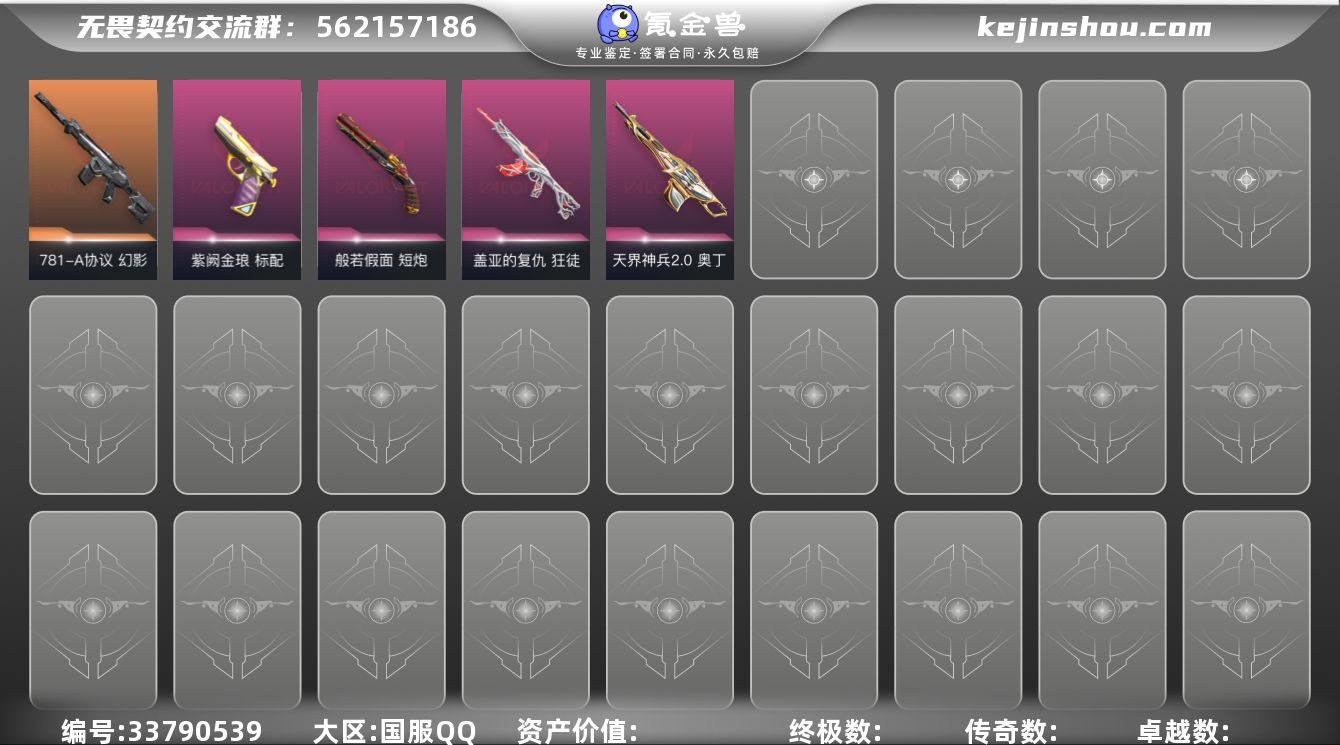 【wwxb943】LV等级232/皮肤总价值17280/段位黄金/总皮肤数量41/刀皮数量3/枪皮数量38/具体详情请看图/幻棱/炼狱/暮蝶/钛狐/铁臂/捷风/雷兹/幽影/不死鸟/贤者/猎枭/蝰蛇/零/芮娜/奇乐/尚勃勒/霓虹/斯凯/盖可/黑梦/近战武器-碎心裂刃/近战武器-紫金爪刀/近战武器-诡秘蛇影军刀/狂徒-盖亚的复仇/狂徒-诡秘蛇影/幻影-781-A协议/幻影-末日之翼/戍卫-折光棱晶/末日泡泡-冥驹/飞将-末日之翼/RGX 11z Pro//3.0 莽侠/莽侠-诡秘蛇影/奥丁-天界神兵2.0/奥丁-末日之翼/虚空遗器-判官/判官-诡秘蛇影/骇灵-无限竞技/蜂刺-折光棱晶/标配-紫阙金琅/标配-折光棱晶/创·纪元-正义/天界神兵-鬼魅/鬼魅-诡秘蛇影/鬼魅-星云暗涌/狂怒-蒙太奇/短炮-般若假面/短炮-末日之翼/无畏契约:暮蝶 卡面/热舞环节 卡面/铁之华 卡面/失而复得 卡面/Clutch 卡面/无畏契约:尚勃勒 卡面/流星兵团 卡面/无畏契约GO!第一卷:芮娜 卡面/无畏契约GO!第一卷:零 卡面/《双城之战》金克丝 卡面/逆向独行 卡面 /无畏契约GO!第一卷:贤者 卡面/钢锁vs盖可 卡面/代号红色 卡面/新兵报到 卡面/V契约 卡面/无畏契约 卡面/皮蛋呼呼 喷漆/伤心心 喷漆/审判之爪 喷漆/加油!加油! 喷漆/分身有术 喷漆/致命优雅 喷漆/永远的答...