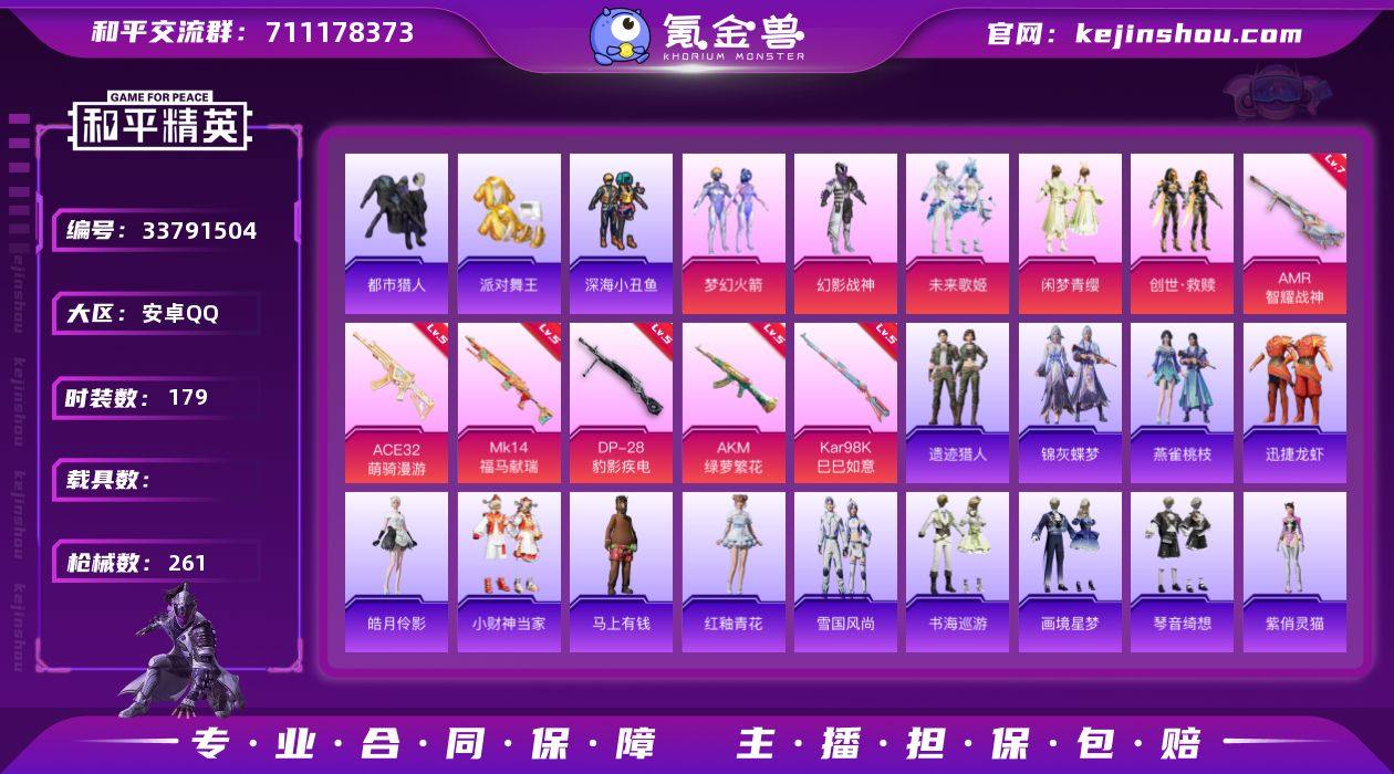 【961552】安卓【小号 粉装-梦幻火箭,套装-浪漫天命,套装-都市猎人,套装-派对舞王,套装-暗影哥特,角色-Mark.06,AKM-绿萝繁花(五级),ACE32-萌骑漫游(五级),百万伏特背包(3级)】 手Q-5粉装-6特效枪-0载具-2粉色飞行器-73564热力值-14王牌印记-179套装-261枪皮 【热门品类】:粉装-梦幻火箭,套装-浪漫天命,套装-都市猎人,套装-派对舞王,套装-深海小丑鱼,套装-小丑鱼,套装-龟仙人,套装-暗影哥特,角色-Mark.06 【粉色套装】:粉装-幻影战神,粉装-梦幻火箭,粉装-未来歌姬,粉装-闲梦青缨,套装-创世·救赎 【粉色枪皮等级】:AKM-绿萝繁花(五级),ACE32-萌骑漫游(五级),Kar98K-巳巳如意(五级),Mk14-福马献瑞(五级),AMR-智耀战神(七级),DP-28-豹影疾电(五级) 【粉色枪皮】:AKM-绿萝繁花,ACE32-萌骑漫游,Kar98K-巳巳如意,Mk14-福马献瑞,AMR-智耀战神,DP-28-豹影疾电 【粉色飞行器】:炫彩糖果飞行器,暮色之舞飞行器 【粉色降落伞】:快乐主宰降落伞,幻影战神降落伞,梦幻火箭降落伞,齐天大圣降落伞,音爆索尼克降落伞,第五大道降落伞,未来歌姬降落伞,变形金刚降落伞,炫光之旅降落伞,江南烟雨降落伞,星空武士降落伞,精灵梦叶罗丽降落伞,异瞳寒姬...