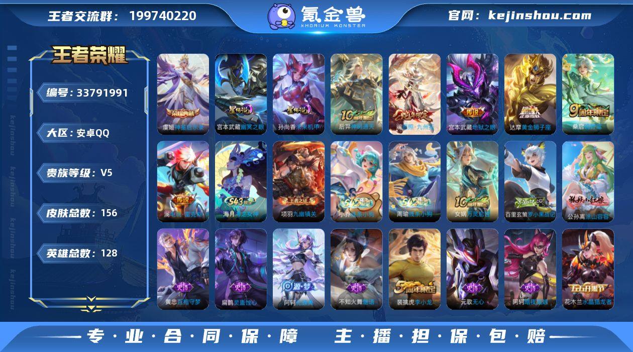 王者21188,安卓Q-V5-至尊星耀IV段位-128英雄-156皮肤-1典藏皮肤-6传说-39史诗 【荣耀典藏】:虞姬神鉴启示录 【传说皮肤】:后羿神树通天,澜愿照九州拓,桑启鸣野蒿,澜电玩雷克斯,达摩黄金狮子座,宫本武藏地狱之眼 【限定皮肤】:大乔绒语心约,姜子牙天穹之誓,狄仁杰阴阳师,赵云皇家上将,孙尚香蔷薇恋人,元歌无心,曹操烛龙,狄仁杰万华元夜,项羽海滩派对,程咬金演武夺筹,钟馗驱傩正仪,鬼谷子原初探秘者,苏烈千军破阵,百里玄策原初追逐者,弈星混沌棋,明世隐疑决卦,裴擒虎李小龙,裴擒虎擒涛扼浪,上官婉儿梁祝,西施玲珑珍味,鲁班大师探海日志,桑启海盐诗旅,戈娅驭风魔法,艾琳女武神,阿古朵江河有灵,张良古海寻踪,鬼谷子天穹祈灯,周瑜熔金海岸 【年限皮肤】:澜愿照九州拓 【赛季限定】:曹操烛龙,弈星混沌棋,明世隐疑决卦,鬼谷子原初探秘者,狄仁杰万华元夜,程咬金演武夺筹,钟馗驱傩正仪,苏烈千军破阵,桑启海盐诗旅,裴擒虎擒涛扼浪,鲁班大师探海日志,张良古海寻踪,鬼谷子天穹祈灯,姜子牙天穹之誓,东皇太一噬灭天穹,太乙真人谧流熔炉,钟馗虚灵犬护,甄姬逆浪荇歌,亚瑟荣光之誓,百里玄策原初追逐者,项羽九幽镇关 【战令限定】:...