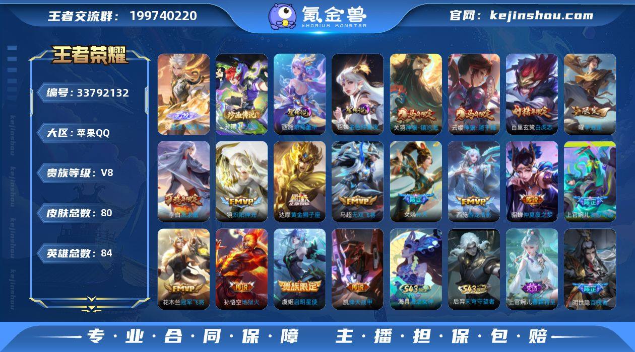 【精品小号·器灵螭龙剑·孙策时之奇旅·游龙堇华·神骥越千峰·神骥镇沧海·补天·游龙清影·李逍遥·白虎志·可二次】YXw26087-苹果Q-84英雄-80皮肤-2王者印记-36铭文-贵族积分5W【贵族8】【1无双·1珍品·2星传说·16传说·4按键】【因赛季更新游戏段付以上号为准!】 【英雄全皮】:敖隐全皮 【无双皮肤】:曜器灵螭龙剑 【珍品传说】:孙策时之奇旅 【星元皮肤】:貂蝉金色仲夏夜,西施游龙堇华 【传说皮肤】:云缨神骥越千峰,关羽神骥镇沧海,上官婉儿妄想奇谈,马超无双飞将,女娲补天,西施游龙清影,曜李逍遥 ,铠绛天战甲,镜炽阳神光,虞姬启明星使,达摩黄金狮子座,百里玄策白虎志,花木兰冠军飞将,貂蝉仲夏夜之梦,李白凤求凰,孙悟空地狱火 【限定皮肤】:狄仁杰阴阳师,赵云皇家上将,妲己时之彼端,元歌无心,狄仁杰魔术师,项羽海滩派对,虞姬启明星使,女娲补天,百里玄策白虎志,上官婉儿妄想奇谈,曜李逍遥 【年限皮肤】:李白凤求凰,百里玄策白虎志 【赛季限定】:亚瑟荣光之誓 【战令限定】:老夫子百相守梦,莱西奥光弋星穹,明世隐往忆晖光,周瑜线条小狗,小乔线条小狗 【史诗皮肤】:后羿天穹守望者,海月海之女神,上官婉儿春霖将至,明世隐百晓客,周瑜线条...