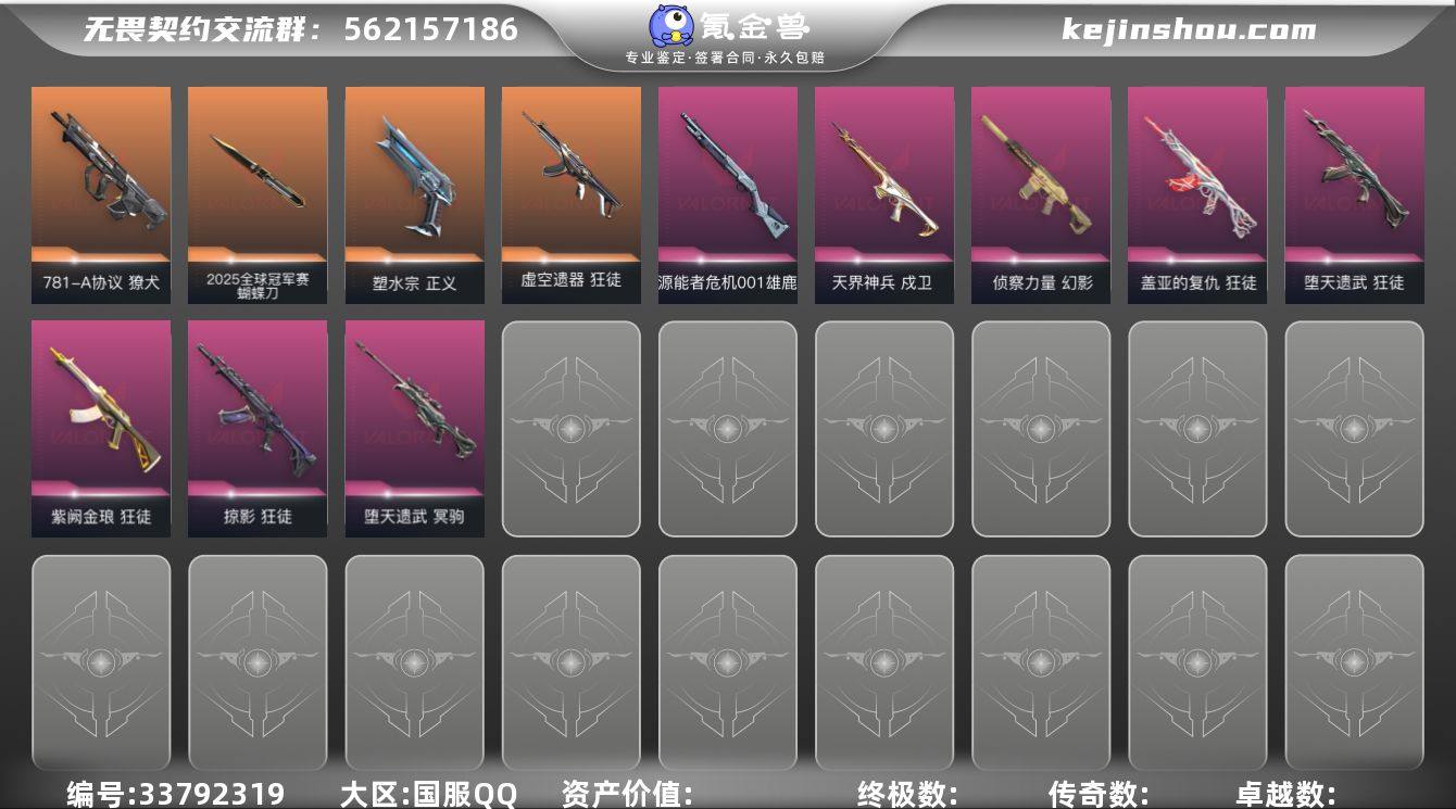 【Dyww62】【套装】:2025全球冠军赛套装,VCT 2025 赛季套装,西部未来套装 【英雄】:幻棱,炼狱,维斯,暮蝶,钛狐,壹决,铁臂,捷风,雷兹,幽影,不死鸟,贤者,猎枭,蝰蛇,零,芮娜,奇乐,尚勃勒,霓虹,斯凯,夜露,星礈,K/O,海神,盖可,黑梦,钢锁 【近战武器】:近战武器-2025全球冠军赛 蝴蝶刀,近战武器-VCT 2025 爪刀,近战武器-威龙之刃,近战武器-未来开拓者,近战武器-珍珠棘贝 短剑,近战武器-超能偶像 应援棒,近战武器-钢轨卫士 战锤,近战武器-天御刀,近战武器-诡秘蛇影 军刀,近战武器-神圣领域 战刀 【狂徒】:狂徒-2025全球冠军赛,狂徒-虚空遗器,狂徒-堕天遗武,狂徒-掠影,狂徒-盖亚的复仇,狂徒-紫阙金琅,狂徒-超能偶像,狂徒-钢轨卫士,狂徒-诡秘蛇影 【幻影】:幻影-西部未来,幻影-侦察力量,幻影-珍珠棘贝,幻影-神圣领域,幻影-聚合之力,幻影-战术小伙伴,幻影-末日之翼,幻影-西部未来 【戍卫】:戍卫-天界神兵,戍卫-超能偶像,戍卫-钢轨卫士,戍卫-珍珠棘贝,戍卫-月球哨兵,戍卫-折光棱晶 【獠犬】:獠犬-781-A协议,獠犬-神圣领域,獠犬-采蜜小蜂队,獠犬-复古浪潮,獠犬-战术小伙伴 【冥驹】:冥驹-堕天遗武,冥驹-复古浪潮,...