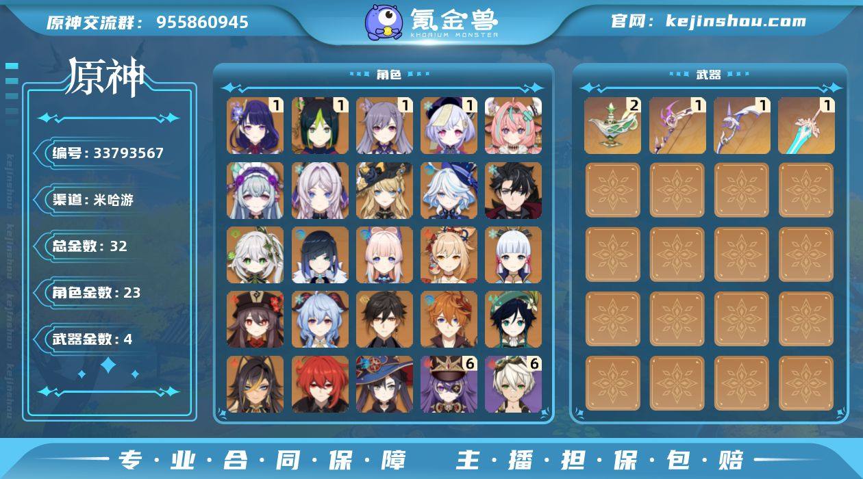 邮箱: 不送邮/死邮 总黄数: 32 冒险等级: 59 1命金色角色: 一命七七,一命刻晴,一命雷电将军,一命提纳里 0命金色角色: 迪卢克,温迪,神里绫华,宵宫,达达利亚,钟离,莫娜,甘雨,胡桃,珊瑚宫心海,夜兰,纳西妲,迪希雅,莱欧斯利,芙宁娜,娜维娅,茜特菈莉,梦见月瑞希,瓦雷莎 拥有武器: 飞雷之弦振,阿莫斯之弓,天空之傲,千夜浮梦 2精武器: 千夜浮梦 1精武器: 飞雷之弦振,阿莫斯之弓,天空之傲