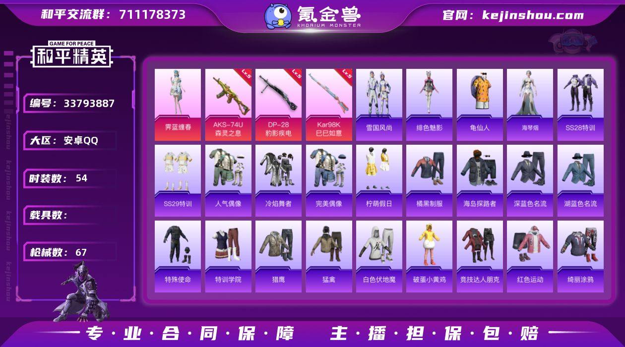 【AZH2696】安卓 手Q【霁蓝缠春 海琴烟】1粉装-3特效枪-0载具-1粉色飞行器-16210热力值-3王牌印记-54套装-67枪皮 【热门品类】:套装-龟仙人 【粉色套装】:角色-霁蓝缠春 【粉色枪皮等级】:AKS-74U-森灵之息(五级),Kar98K-巳巳如意(五级),DP-28-豹影疾电(五级) 【粉色枪皮】:AKS-74U-森灵之息,Kar98K-巳巳如意,DP-28-豹影疾电 【粉色降落伞】:炫彩糖果降落伞 【稀有套装】:套装-龟仙人,套装-雪国风尚,套装-炫彩糖果,角色-海琴烟,角色-绯色魅影 【稀有枪皮】:AKM-破晓战魂,SCAR-L-夜灯,SCAR-L-炫彩节奏,M416-蓝色火焰,AUG-绝对恒星,M762-天降萌叽,M762-登顶巅峰,UZI-啾咪啾咪,UZI-天降萌叽,UMP45-夜灯,Vector-生命誓言,AKS-74U-鬼刀,P90-巳巳如意,AMR-喜羊羊与灰太狼,AMR-鬼刀,S12K-玩趣呆呆,S12K-夜灯,M249-糯团青竹,MG3-幻世战舞者,破片手榴弹-巳巳如意 【其他套装】:套装-SS28特训,套装-SS29特训,套装-人气偶像,套装-冷焰舞者,套装-完美偶像,套装-柠萌假日,套装-橘黑制服,套装-海岛探路者,套装-深蓝色名流,套装-湖蓝色名流,套装-特殊使命,套装-特训学院,套装-猎鹰,套装-猛禽,套装-白色伏地魔,套装-破蛋小黄鸡,套装-竞技...