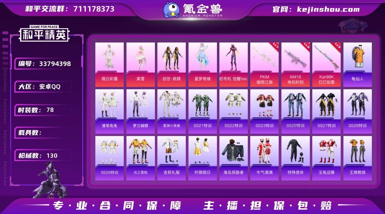 【LHPX2642】精品小号【特价出售/店主推荐】安卓 手Q-5粉装-3特效枪-0载具-1粉色飞行器-37524热力值-7王牌印记-78套装-130枪皮【热门品类】:套装-龟仙人【粉色套装】:角色-烟云彩露,角色-美雪,套装-创世·救赎,角色-星梦奇缘,角色-初号机 觉醒Ver.【粉色枪皮等级】:M416-电玩时刻(五级),Kar98K-巳巳如意(五级),PKM-江南烟雨(七级)【粉色枪皮】:M416-电玩时刻,Kar98K-巳巳如意,PKM-江南烟雨【粉色飞行器】:炫彩糖果飞行器