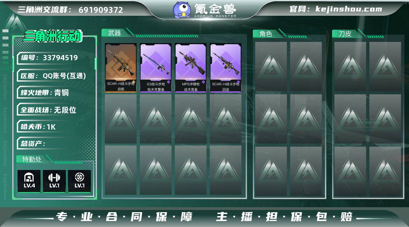 【msjz224】0m总资产-0k哈夫币-53烽火等级-青铜-1战场等级-无军衔 追缴1100W介意勿扰看清楚再下单 【近战皮肤】:近战-黑鹰 【传说外观】:SCAR-H战斗步枪-启航 【史诗外观】:SCAR-H战斗步枪-囚徒,G3战斗步枪-哈夫克警备,MP5冲锋枪-战术竞备 【稀有外观】:M7战斗步枪-捣蛋鬼,腾龙突击步枪-冰天雪地,UZI冲锋枪-亚特兰蒂斯,勇士冲锋枪-冰天雪地,SKS射手步枪-弄臣,SR-25射手步枪-开拓,SV-98狙击步枪-星链科技,SV-98狙击步枪-哈夫克航天,SV-98狙击步枪-精英联盟 【普通外观】:M4A1突击步枪-粉色涂装,M4A1突击步枪-高雅黑,QBZ95-1突击步枪-海浪,腾龙突击步枪-三角洲力量,M16A4突击步枪-高雅黑,M7战斗步枪-黑巧甜心,G3战斗步枪-高雅黑,PTR-32突击步枪-黄蜂,AS Val突击步枪-黑巧甜心,MP5冲锋枪-黄蜂,P90冲锋枪-黑巧甜心,UZI冲锋枪-海色,勇士冲锋枪-磐石,M1014霰弹枪-高雅黑,PKM通用机枪-变色龙,M250通用机枪-条纹,SVD狙击步枪-高雅黑,SR-25射手步枪-黄蜂,SV-98狙击步枪-红色涂装 【载具外观】:轮式突击炮-荣耀 【挂饰】:挂饰-启程
