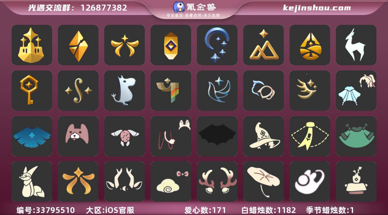 【A1029】区服:国服ios,登入方式:手机【17季卡】新年裤鹿角巫师帽蝙蝠斗王子围巾星球夹克线框斗篷茶桌,蜡烛数量:1182爱心:171,当前身高0.452,最高身高0.432,最矮身高14.432,已经毕业地图:晨岛,云野,雨林,霞谷,暮土,禁阁,已经毕业季节:迁徒季,双星季,青鸟季,彩染季,姆明季,二重奏季,筑巢季,九色鹿季,归巢季,拾光季,夜行季,追忆季,欧若拉季,破晓季,梦想季,稀有礼包:祥云瑞气服饰,彩虹武士裤,玉兔拖鞋,雪人暖心靴,时尚火焰墨镜,时尚爱心墨镜,神鹿祝福头饰,日光耳环,圣诞鹿角,水母肩饰,姆明饰品套装,巫师帽,南瓜头,海蓝波浪发型,贝壳,玉兔,大桔大利,四叶草头饰,大耳狗装扮,迷你大耳狗发饰,小狗周年头饰,创始人礼包,小王子围巾,星球夹克,蝙蝠斗篷,白雪斗篷,暖冬瑞雪,暖冬夹棉斗篷,风之旅人礼包,周年线框斗篷,遥鲲披肩斗篷,荷叶伞,狐狸背包,茶桌,冥龙南瓜,周年庆抱枕,大耳狗抱枕,必胜客披萨,活力海牛套装,猫耳尾套装,水母帽礼包,瑞雪围巾斗篷,青衫落拓礼包,热门物品:蝴蝶结,公主头,正太头,樱花头,猫猫头,搓澡巾,武士裤,白棉裤,背带裤,花环头饰,宴会围巾,虚荣发型,红耳机,黄鼠狼面具,红狐狸面具,花瓣斗篷,灯泡斗篷,红金斗篷,白金斗篷,白鸟斗篷,吉他,尤克里里,高音钢琴,笛子,...
