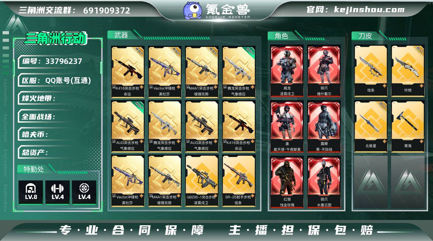 实名: 可修改 干员外观: 红狼-蚀金玫瑰,骇爪-水墨云图,无名-夜鹰(S4),威龙-飞虎,蜂医-送葬人·无题密令(S5),露娜-黑·天际线,蛊-能天使·午夜邮差,深蓝-不破誓约(S6),骇爪-维什戴尔,红狼-电锯惊魂,露娜-金牌射手(S7),威龙-凌霄戍卫 传说武器皮肤: M4A1突击步枪-棱镜攻势(典藏),Vector冲锋枪-美杜莎(典藏),近战-怜悯,ASh-12战斗步枪-怜悯,M7战斗步枪-怜悯,SR-25射手步枪-水墨云图,SCAR-H战斗步枪-水墨云图,QJB201轻机枪-黑海,MP5冲锋枪-黑海,近战-黑海,K416突击步枪-命运(典藏),AK-12突击步枪-夜鹰,G18-飞虎,PSG-1射手步枪-猩红乐队,AUG突击步枪-气象感应(典藏),腾龙突击步枪-气象感应(典藏),近战-北极星,K437突击步枪-北极星,QCQ171冲锋枪-北极星,725双管霰弹枪-送葬人-无题密令,M4A1突击步枪-阿米娅,CAR-15突击步枪-阿米娅,复合弓-黑-天际线,AK-12突击步枪-特斯拉线圈,UZI冲锋枪-特斯拉线圈,勇士冲锋枪-能天使-午夜邮差,Vector冲锋枪-能天使-午夜邮差,S12K霰弹枪-电锯惊魂,M14射手步枪-电锯惊魂,SCAR-H战斗步枪-启航,ASh-12战斗步枪-鹅鸭杀,G3战斗步枪-骑士,KC17突击步枪-电锯惊魂,近战-信条,P90冲锋枪-信条,SR-25射手步枪-信条,SG552突击步枪-运动员,SKS射手步枪-骑士,QBZ95-1...