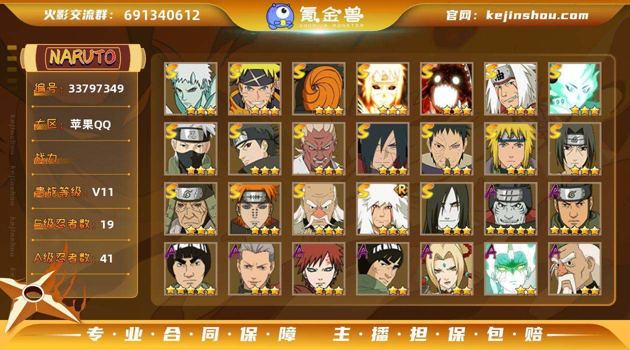 VIP11,783W战力,S忍19个,A忍41个