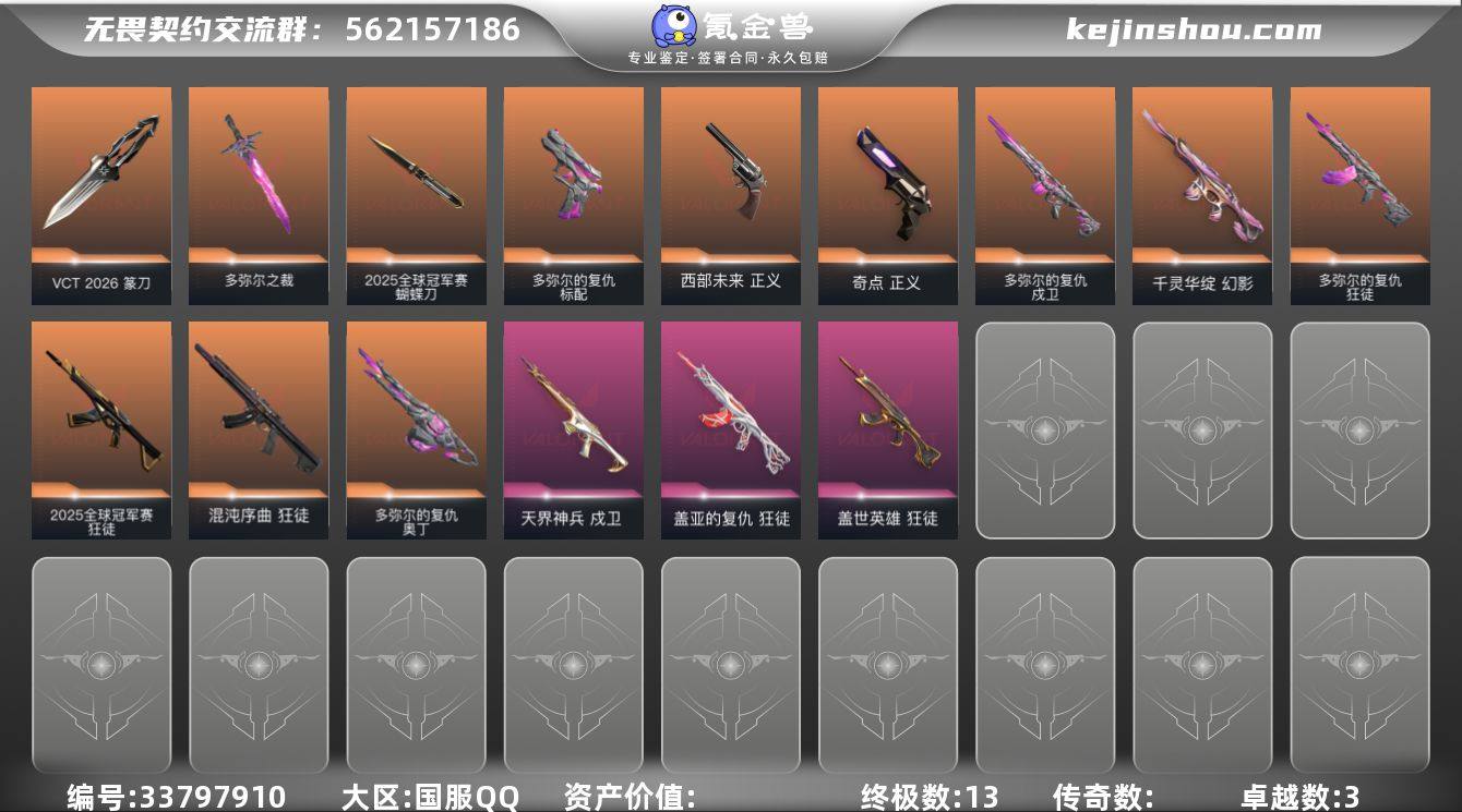 w4602 【精品号】盖亚狂徒 vct26 猴子狂徒 奇点正义 天界戍卫 莲花幻影 石头标配 石头戍卫 石头狂徒 石头奥迪 石头刀 西部正义 25冠军狂徒 25蝴蝶刀 混沌狂徒库存:29220 剩余VP:113剩余R点:5 段位:青铜1
