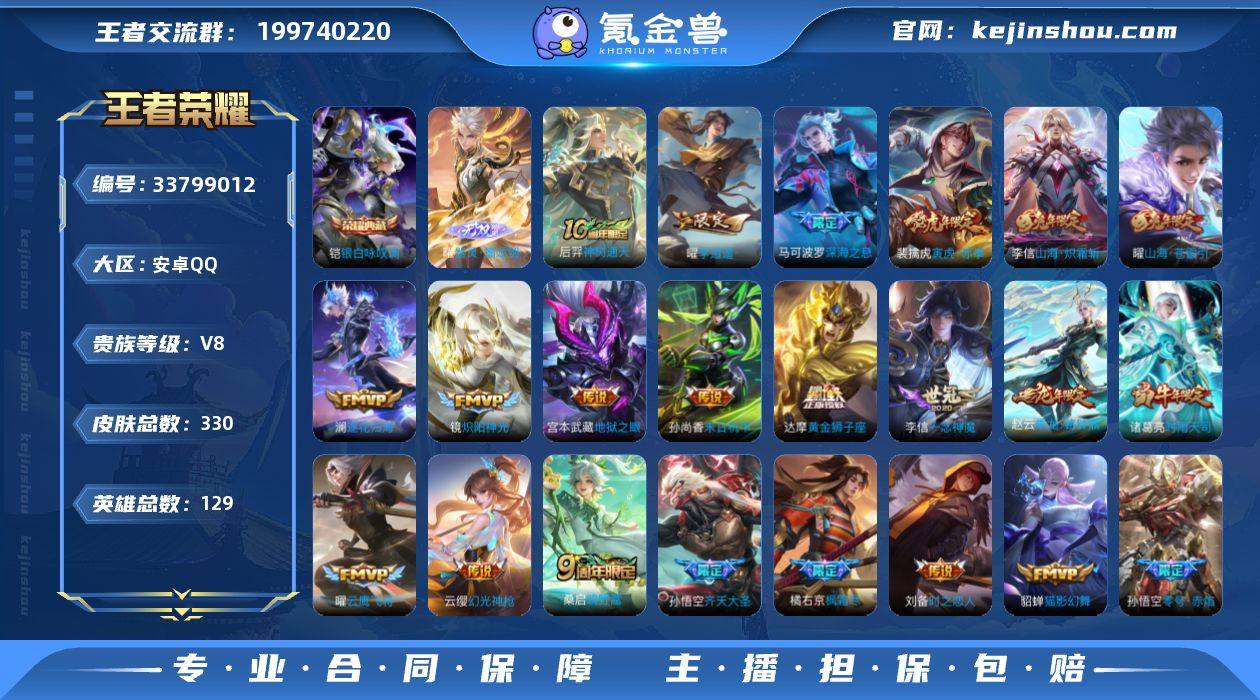 安卓Q-V8-永恒钻石III段位-129英雄-330皮肤-1典藏皮肤-1无双-29传说-107史诗 【英雄全皮】:孙权全皮,橘右京全皮,曜全皮 【荣耀典藏】:铠银白咏叹调 【无双皮肤】:曜器灵螭龙剑 【传说皮肤】:后羿神树通天,云缨幻光神枪,桑启鸣野蒿,赵云乘龙铭钟鼎,澜逐花归海,孙悟空齐天大圣,曜山海苍雷引,李信山海炽霜斩,橘右京枫霜尽,马可波罗深海之息,裴擒虎寅虎赤拳,曜李逍遥 ,李元芳飞鸢探春,诸葛亮时雨天司,铠绛天战甲,镜炽阳神光,虞姬启明星使,孙悟空零号赤焰,曜云鹰飞将,李信一念神魔,刘备时之恋人,貂蝉猫影幻舞,张良黄金白羊座,达摩黄金狮子座,花木兰冠军飞将,梦奇胖达荣荣,孙尚香末日机甲,宫本武藏地狱之眼,孙悟空地狱火 【限定皮肤】:蔡文姬夏日便利店,大乔绒语心约,虞姬夏日便利店,姜子牙天穹之誓,狄仁杰阴阳师,赵云皇家上将,赵云引擎之心,赵云龙胆,墨子神迹守卫,嬴政优雅恋人,庄周高山流水,高渐离玩趣恶龙,扁鹊奇幻香踪,芈月白晶晶,芈月幻夜卜梦,吕布猎兽之王,吕布御风骁将,元歌云间偶戏,元歌无心,甄姬游园惊梦,典韦蓝屏警告,马可波罗暗影游猎,马可波罗深海之息,马可波罗山海玄木吟,狄仁杰魔术师,狄仁杰万华元夜,...