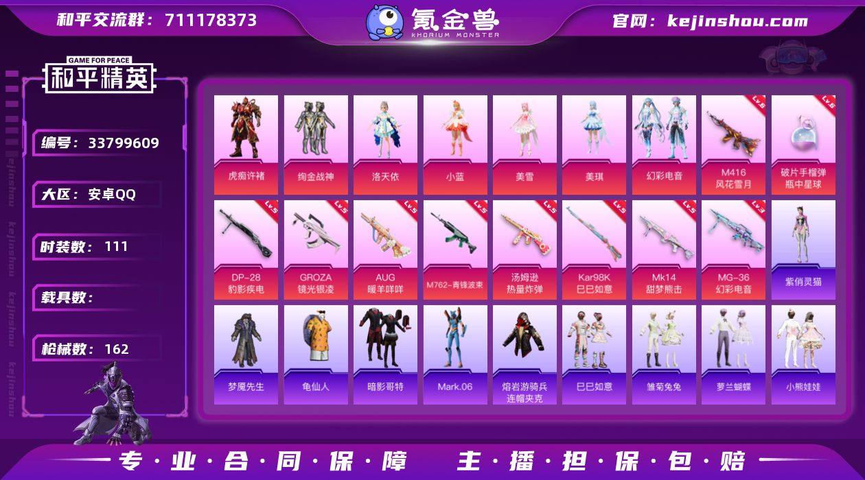 安卓 手Q-7粉装-10特效枪-0载具-3粉色飞行器-47941热力值-9王牌印记-111套装-162枪皮 【热门品类】:套装-AG战队服,套装-龟仙人,套装-暗影哥特,角色-Mark.06,熔岩游骑兵连帽夹克 【粉色套装】:粉装-绚金战神,角色-洛天依,角色-小蓝,角色-美雪,角色-美琪,粉装-幻彩电音,角色-虎痴许褚 【粉色枪皮等级】:M416-风花雪月(六级),GROZA-镜光银凌(五级),AUG-暖羊咩咩(五级),M762-青锋波束(五级),汤姆逊-热量炸弹(五级),Kar98K-巳巳如意(五级),Mk14-甜梦熊击(五级),DP-28-豹影疾电(五级),MG-36-幻彩电音(三级),破片手榴弹-瓶中星球(六级) 【粉色枪皮】:M416-风花雪月,GROZA-镜光银凌,AUG-暖羊咩咩,M762-青锋波束,汤姆逊-热量炸弹,Kar98K-巳巳如意,Mk14-甜梦熊击,DP-28-豹影疾电,MG-36-幻彩电音,破片手榴弹-瓶中星球 【粉色飞行器】:幻星舰长飞行器,飞天猪飞行器 【粉色降落伞】:精灵梦叶罗丽降落伞,忍者神龟降落伞,千金淑猫降落伞,彩虹独角兽降落伞,墨金战记降落伞,智耀战神降落伞,御兔特攻降落伞,幻彩电音降落伞,时光之吻降落伞,冷漠罗丽降落伞,喜羊羊与灰太狼降落伞,炫彩糖果降落伞 【稀有套装】:套装-龟仙人,套装-巳巳如意,套装-...