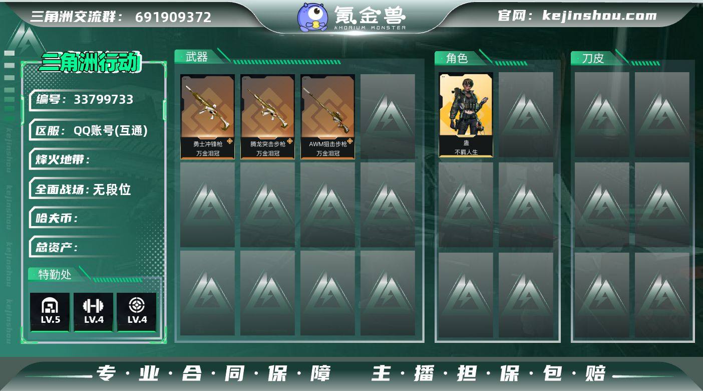 【总资产25.61M 哈弗币13.7万 干员外观1个 烽火53级 青铜】黑鹰 MP7冲锋枪-六套之力 蛊-不羁人生 腾龙突击步枪-万金泪冠,勇士冲锋枪-万金泪冠,AWM狙击步枪-万金泪冠 M1A4坦克-巅峰竞赛,F-45A战斗机-建造,侦察直升机-酒红,编号:QNBFL77