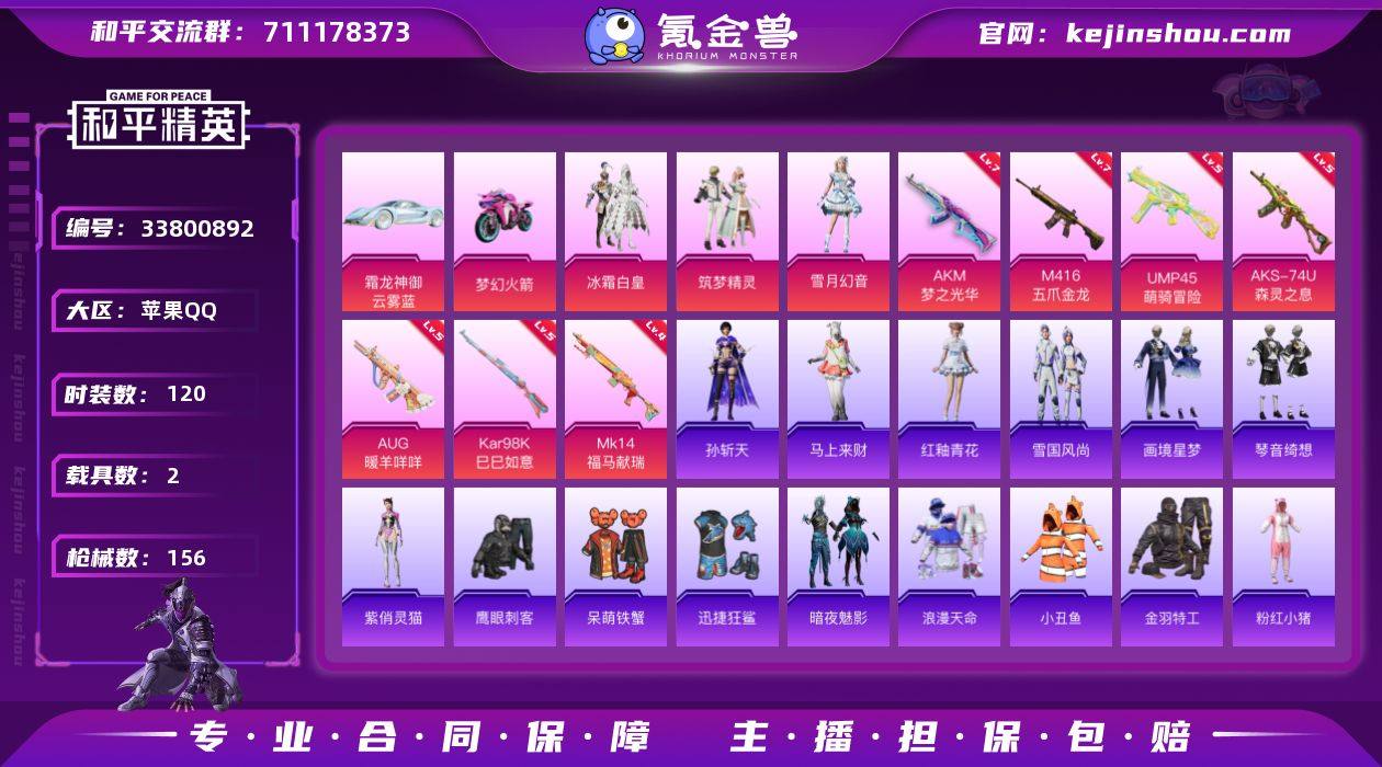 【LHPX1443】【特价出售/店主推荐】苹果 手Q-3粉装-7特效枪-2载具-1粉色飞行器-51184热力值-6王牌印记-120套装-156枪皮【热门品类】:套装-浪漫天命,套装-小丑鱼,套装-金羽特工,套装-粉红小猪,角色-Mark.06【粉色套装】:粉装-冰霜白皇,粉装-筑梦精灵,粉装-雪月幻音【粉色枪皮等级】:AKM-梦之光华(七级),M416-五爪金龙(七级),AUG-暖羊咩咩(五级),UMP45-萌骑冒险(五级),AKS-74U-森灵之息(五级),Kar98K-巳巳如意(五级),Mk14-福马献瑞(四级)【粉色载具】:霜龙神御(云雾蓝),双人摩托-梦幻火箭【粉色枪皮】:AKM-梦之光华,M416-五爪金龙,AUG-暖羊咩咩,UMP45-萌骑冒险,AKS-74U-森灵之息,Kar98K-巳巳如意,Mk14-福马献瑞【粉色飞行器】:炫彩糖果飞行器