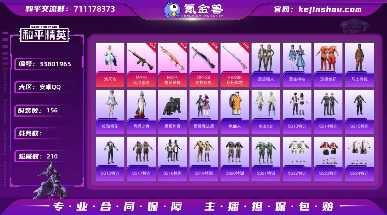 【961732】安卓【小号 角色-洛天依,M416-五爪金龙(七级),Kar98K-巳巳如意(五级),梦幻火箭背包】手Q-1粉装-4特效枪-1粉色飞行器-55471热力值-16王牌印记-156套装-210枪皮 【热门品类】:套装-龟仙人 【粉色套装】:角色-洛天依 【粉色枪皮等级】:M416-五爪金龙(七级),Kar98K-巳巳如意(五级),Mk14-福马献瑞(五级),DP-28-豹影疾电(五级) 【粉色枪皮】:M416-五爪金龙,Kar98K-巳巳如意,Mk14-福马献瑞,DP-28-豹影疾电 【粉色飞行器】:炫彩糖果飞行器 【粉色降落伞】:神秘黑猫降落伞,银刃赛罗降落伞,洛神天依降落伞,彩虹甜喵降落伞,智耀战神降落伞,喜羊羊与灰太狼降落伞,炫彩糖果降落伞 【稀有套装】:套装-龟仙人,套装-炫彩糖果,套装-马上有钱,套装-迅捷龙虾,套装-遗迹猎人,套装-极速光影,角色-月烬之祷,套装-雨过天青,套装-红釉青花,套装-燕雀桃枝 【稀有枪皮】:AUG-冰晶雪宝,AKM-冰凉西瓜,AKM-夜灯,AKM-彩虹符号,AKM-星之彼岸,AKM-生命誓言,AKM-破晓战魂,AKM-萌趣颜团子,AKM-虎虎生威,AKM-霓虹街区,AKM-龙的传人,M16A4-夜灯,M16A4-幻世战舞者,M16A4-甜心亚梦,M16A4-红色方程式,SCAR-L-夜灯,SCAR-L-炫彩节奏,SCAR-L-玉兔迎春,SCAR...