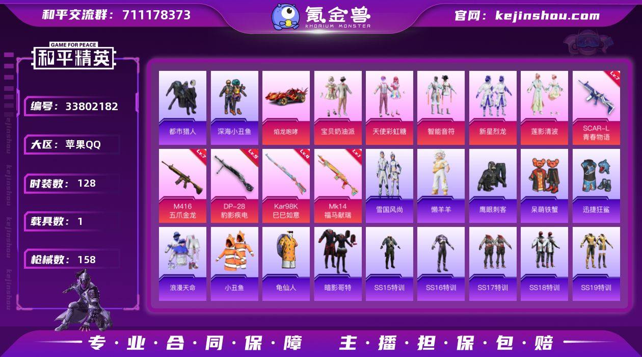 五一特惠成本价 清库存 J3485 精品 5粉 5特 1载具 宝贝奶油派 新星烈龙 智能音符 小丑鱼 深海小丑鱼 暗影哥特 都市猎人 狂沙舞者 浪漫天命 满级五爪金龙 满级青春物语 国宝头盔 小熊背包 苹果手Q-5粉装-5特效枪-1载具-1粉色飞行器-58508热力值-10王牌印记-128套装-158枪皮 【热门品类】:套装-浪漫天命,套装-都市猎人,套装-深海小丑鱼,套装-小丑鱼,套装-龟仙人,套装-暗影哥特 【粉色套装】:粉装-宝贝奶油派,粉装-天使彩虹糖,粉装-智能音符,粉装-新星烈龙,粉装-莲影清波 【粉色枪皮等级】:SCAR-L-青春物语(七级),M416-五爪金龙(七级),Kar98K-巳巳如意(四级),Mk14-福马献瑞(一级),DP-28-豹影疾电(五级) 【粉色载具】:焰龙咆哮 【粉色枪皮】:SCAR-L-青春物语,M416-五爪金龙,Kar98K-巳巳如意,Mk14-福马献瑞,DP-28-豹影疾电 【粉色飞行器】:炫彩糖果飞行器 【粉色降落伞】:百万伏特降落伞,甜心宝贝降落伞,香水柠檬降落伞,怪笑疯兔降落伞,青空秋雨降落伞,暗夜鎏金降落伞,圣堂之誓降落伞,精灵梦叶罗丽降落伞,忍者神龟降落伞,异瞳寒姬降落伞,炫彩糖果降落伞 【稀有套装】:套装-龟仙人,套装-雪国风尚,套装-炫彩糖果,玩偶服-懒羊羊 【稀有枪皮】...