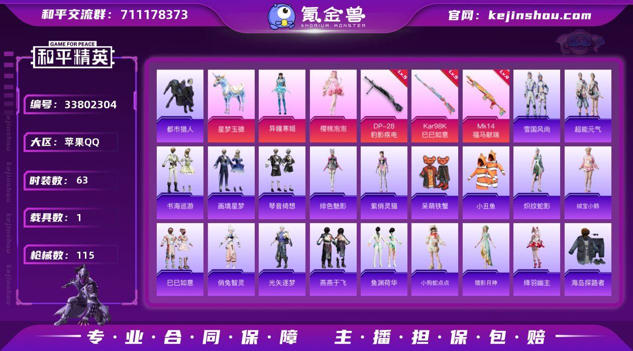 【FK22】63套装/枪械3/装备129/载具1/战备71/王牌印记7/热力值28858/五级Kar98K-巳巳如意/四级MK14-福马献瑞/五级DP-28-豹影疾电/都市猎人/小丑鱼/樱桃泡泡/异瞳寒姬/星梦玉骢/Kar98K-巳巳如意/MK14-福马献瑞/DP-28-豹影疾电/炫彩糖果飞行器/星梦奇缘飞行器/动力核心飞行器/月影灵韵降落伞/动力核心降落伞/幻影飞狐降落伞/异瞳寒姬降落伞/炫彩糖果降落伞/炽纹蛇影/绒宝小鹅/巳巳如意/超能元气/雪国风尚/炫彩糖果/俏兔智灵/光矢逐梦/燕燕于飞/鱼渊荷华/小狗蛇点点/猎影月神/绛羽幽主/绯色魅影/紫俏灵猫/书海巡游/画境星梦/琴音绮想/AUG-冰晶雪宝/AKM-破晓战魂/M16A4-红色方程式/M16A4-蓝色火焰/SCAR-L-夜灯/SCAR-L-炫彩节奏/SCAR-L-红色方程式/SCAR-L-小狗蛇点点/M416-红色方程式/M416-蓝色火焰/GROZA-影袭/AUG-耀粉歌者/AUG-月影灵韵/M762-天降萌叽/M762-彩虹符号/M762-登顶巅峰/AC-VAL-六号稻草人/蜜獾-天降萌叽/ACE32-画境星梦/UZI-红色方程式/UZI-月影灵韵/UMP45-夜灯/UMP45-蓝色火焰/UMP45-绒宝小鹅/UMP45-极意拳锋/汤姆逊-炫彩节奏/汤姆逊-耀粉歌者/汤姆逊-像素花束/MP5K-画境星梦/P90-巳巳如意/Kar98K-洛神天依/Kar98K-红色方程式/SKS-炫彩节奏/Mini14-梦幻火箭/Mini14-...