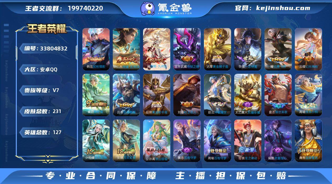 【5430】安卓Q-V7-永恒钻石V段位-127英雄-231皮肤-1典藏皮肤-12传说-68史诗 【英雄全皮】:孙权全皮,海诺全皮 【荣耀典藏】:韩信弑枪猎影 【传说皮肤】:狄仁杰神骥赴朔漠,澜愿照九州拓,云缨幻光神枪,桑启鸣野蒿,吕布怒海麟威,赵云淬星耀世,曜云鹰飞将,李信一念神魔,刘备时之恋人,达摩黄金狮子座,后羿黄金射手座,宫本武藏地狱之眼 【限定皮肤】:暃埋骨钱,蒙犽顽岩魄,蔡文姬夏日便利店,大乔绒语心约,虞姬夏日便利店,姜子牙天穹之誓,杨戬破阵退雄兵,狄仁杰阴阳师,赵云皇家上将,典韦蓝屏警告,狄仁杰魔术师,狄仁杰万华元夜,项羽海滩派对,程咬金演武夺筹,兰陵王金庭之子,李元芳云中旅人,钟馗驱傩正仪,鬼谷子五谷丰年,沈梦溪大漠名商,裴擒虎擒涛扼浪,云中君纤云弄巧,鲁班大师探海日志,桑启海盐诗旅,张良古海寻踪,蒙犽百解令,蒙恬荣光圣徽,高渐离燃音魔法,妲己灵卜魔法,鬼谷子天穹祈灯,伽罗琥珀纪元,姬小满妄想食味,沈梦溪龙舞盛年,鲁班七号蔬乡物语,李元芳蔬乡物语,刘邦剑破天穹,程咬金群星魔术团,关羽决胜骁骑,镜青焰无极,项羽苍威无极,海诺心动手记,芈月浮光幕影,周瑜熔金海岸 【年限皮肤】:澜愿照九州拓 【赛季限定】:...
