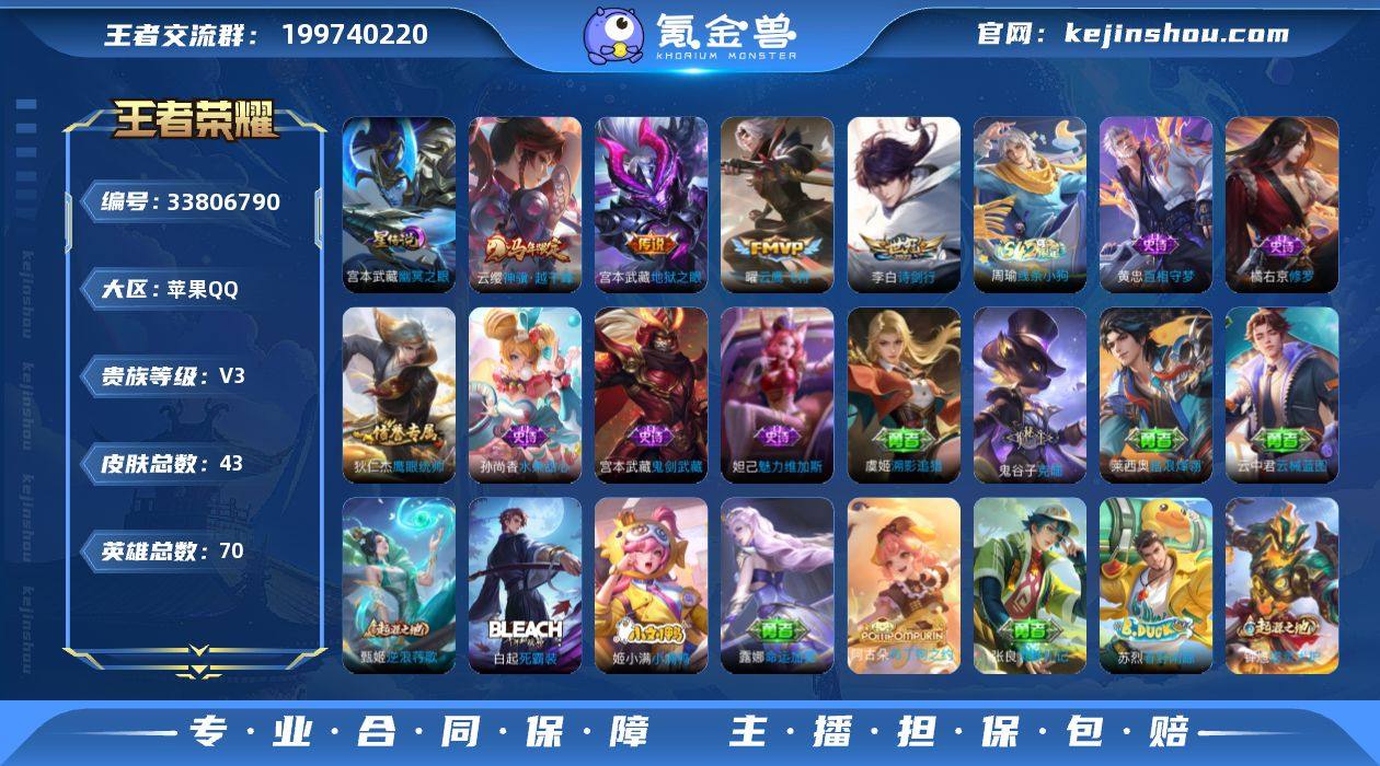 实名: 可修改 贵族等级: V3 英雄数: 70 皮肤数: 43 星传说: 幽冥之眼 传说皮: 云鹰飞将,地狱之眼,神骥·越千峰 限定皮: 诗剑行