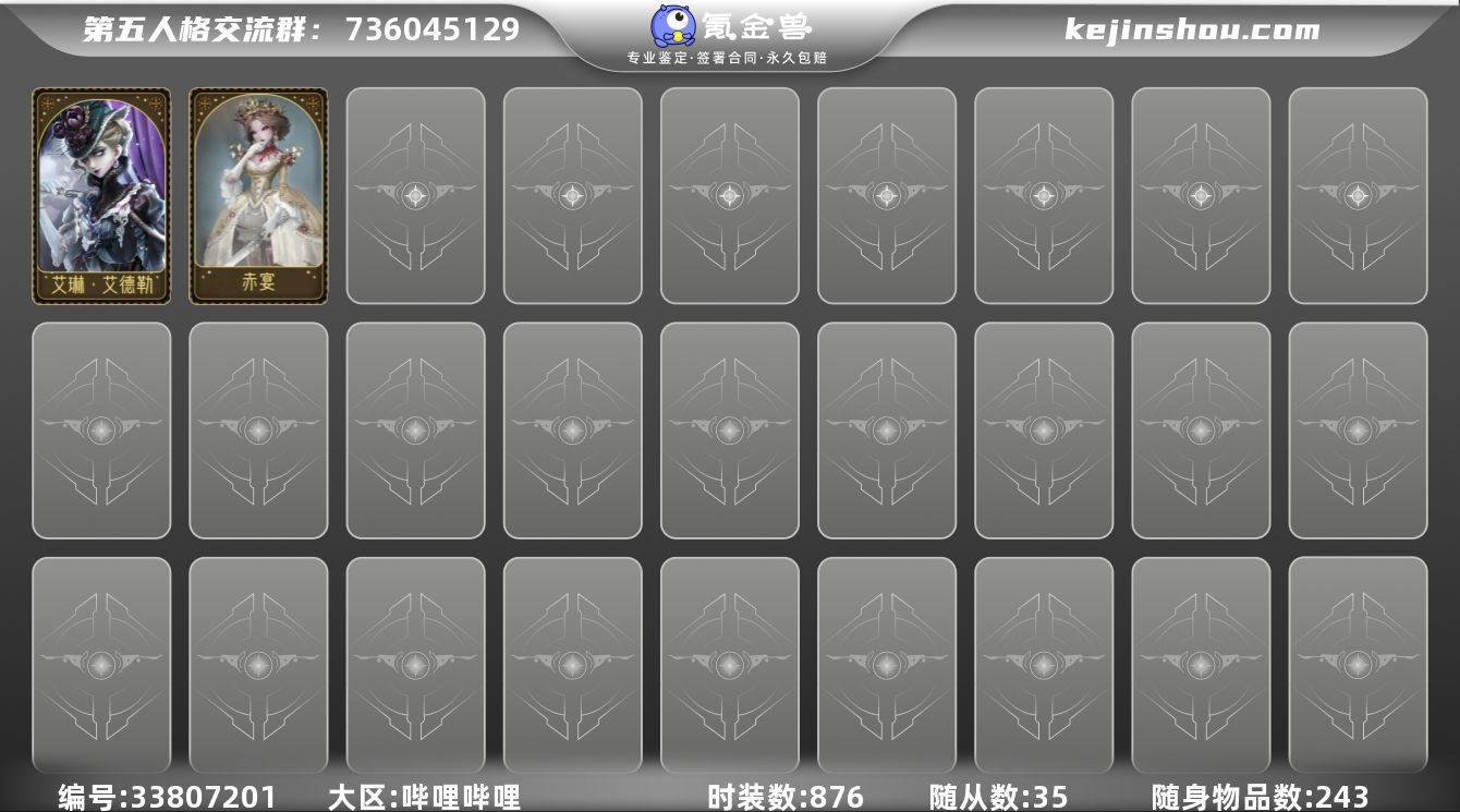 第五人格b服 红夫人/红蝶/调酒师/调香师大情号。红夫人差虚妄鉴赏家全皮现有57金,180紫皮,限定金小绵羊赤宴十三娘伊莎贝拉索菲亚画家双限全角色主页历巅25星多联动多限定,新加了红夫人福尔摩斯和拉拉海底捞联动,古堡和迷雾山庄归宿28.2万分可换绑