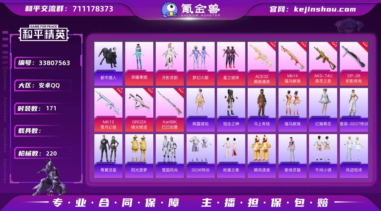 可二次【女号都市猎人7特效枪4粉装浪漫天命 秒换绑不用等】 安卓Q区-63356热力值-171套装-220枪皮 【2稀有】 都市猎人 Mark.06蓝螳螂【4粉装】 梦幻火箭 星之彼岸 角色-异瞳寒姬 角色-月影灵韵【7特效枪】 AKS-74U-森灵之息(5级) Mk14-福马献瑞(5级) ACE32-萌骑漫游(5级) MK12-雪月幻音(5级) Kar98K-巳巳如意(5级) GROZA-镜光银凌(5级) DP-28-豹影疾电(5级)【224热门】 迪迦奥特曼 浪漫天命 都市猎人(蓝口罩) 极速红龙 冰川格斗者 白色伏地魔 SS27特训 SS26特训 SS25特训 SS24特训 SS23特训 SS22特训 Mini14-梦幻火箭 Kar98K-电玩视界 SCAR-L-玉兔迎春 Mk47-乌木金纹 UZI-娇憨猪猪 UMP45-蓝色火焰 DBS-彩虹符号 M249-彩虹符号 MG3-幻世战舞者 AKM-虎虎生威 AKM-星之彼岸 M416-暗夜行者 鹰眼刺客 M416-蓝色火焰 GROZA-彩虹符号 破蛋小黄鸡 长空猛禽 迎春赐吉 特训学院 青涩时光 青年教官 牛气冲天 霓虹街区 魅力单车 猎鹰 黎明保卫者 蓝色运动 橘黑制服 竞技达人朋克 黄色运动 漫步者 黄色伏地魔 红色运动 黑色伏地魔 海岛探路者 纯真浪花 春日漫步 S1897-糯团青竹 AA12-G-雨过天青 沙漠之鹰-雨过天青 P90-紫矿核心 GROZA-紫矿核心 M16A4-雨过天青 AC-VAL-玩趣呆呆 顶瓜瓜 诡诞...