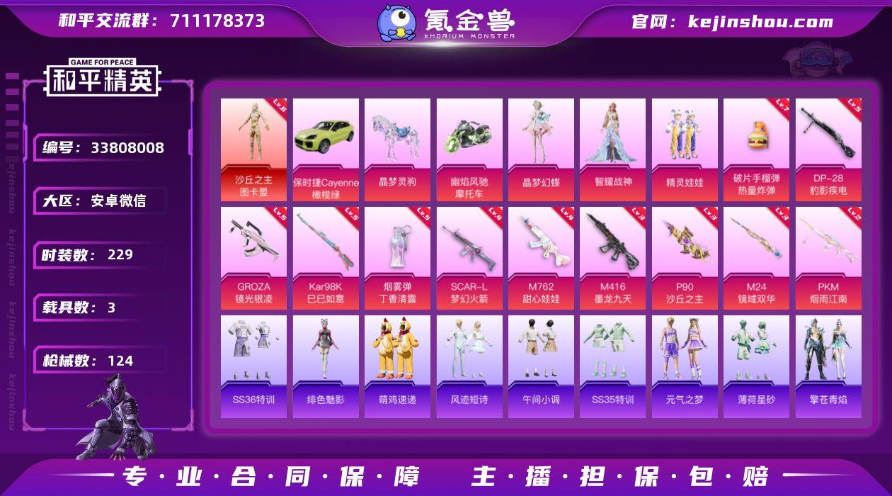 DB2900 安卓微信 6级图卡盟小号 可改实名可转区 1红 3粉 11特 3载具 (65级卓越收藏家)-连体王者V9 319皮肤4典藏1无双2珍品传说28传说营地ID 6级图卡盟 精灵娃娃 3级M4墨龙 3级M24境域双华 3级P90沙丘之主 保时捷 幽焰风驰摩托 晶梦灵驹 安卓微信-3王牌印记-1红装-3粉装-11特效枪-3载具-56003热力值-63套装-124枪皮-1卓越印记-1传奇印记 【1红装】沙丘之主-图卡盟/6级 【3粉装】角色-智耀战神,角色-晶梦幻蝶,套装-精灵娃娃 【11特效枪】SCAR-L-梦幻火箭/4级,M24-镜域双华/3级,烟雾弹-丁香清露/5级,破片手榴弹-热量炸弹/7级,PKM-江南烟雨/2级,P90-沙丘之主/3级,GROZA-镜光银凌/5级,DP-28-豹影疾电/5级,M416-墨龙九天/3级,Kar98K-巳巳如意/5级,M762-甜心娃娃/4级 【3稀有载具】保时捷Cayenne(橄榄绿),晶梦灵驹,幽焰风驰摩托车 【63稀有时装】图卡盟/6级,晶梦幻蝶,智耀战神,精灵娃娃,大橘为重,自由猎手,神秘黑猫,晶灵使者,龙魂突击队,纯白跃动,都市丽猫,街头风暴,鱼渊荷华,青团波波,大橘大利,燕燕于飞,战术大师,糖糖葫芦,晶辉守护,巳巳如意,棉花软糖,午间小调,星影赞美诗,朱霞炽焰,凌霄紫焰,擎苍青焰,绯色魅影,萌鸡速递,元气之梦,风迹短诗,薄荷星砂,蓝冰羽,恋语绒绒,紫幽梦,SS...